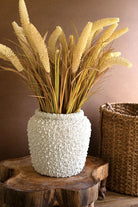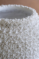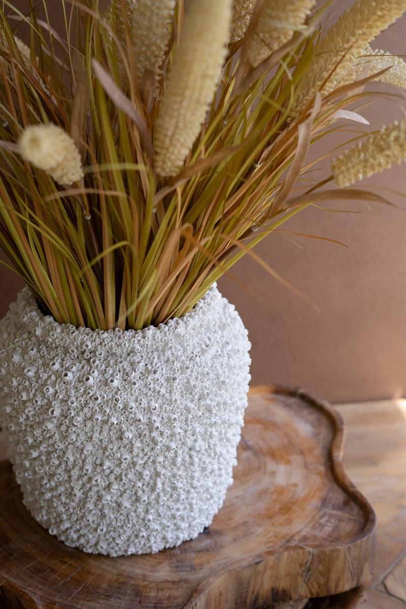 Need to brighten an empty corner? Grab this heavily textured barnacle pot for your seaside space. It measures 11" tall and has rubber feet. Rubber feet.