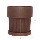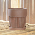 Ribbed Clay Pot & Saucer - Lrg - Brown Clay