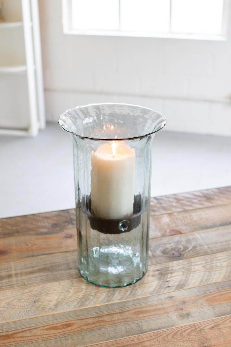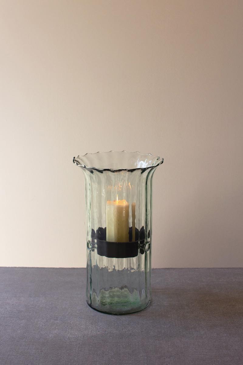 Ribbed Glass Candle Cylinder W Rustic Insert Medium