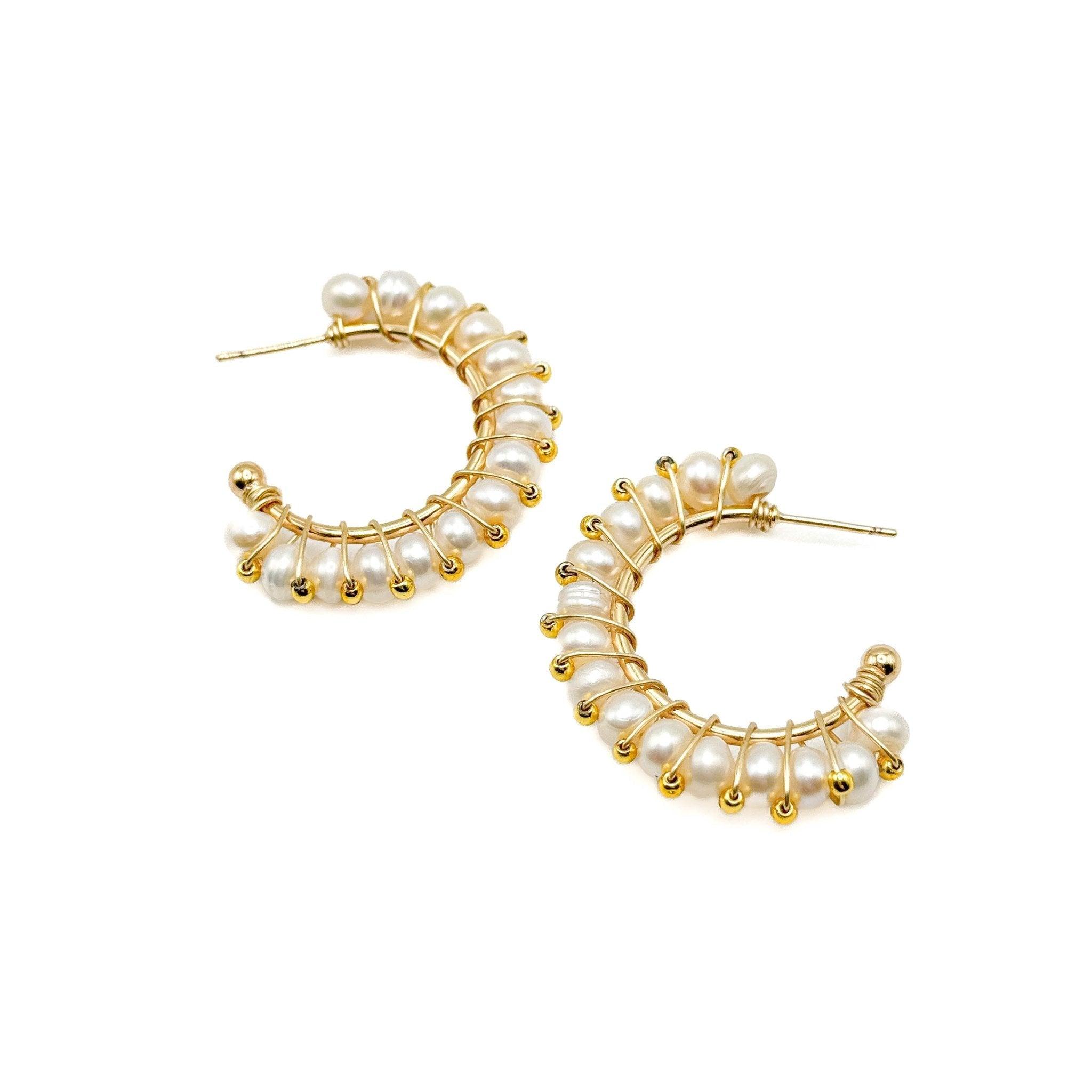 Rica (or rich in Spanish) is what you are going to feel and look with these gold filled hoop earrings with 6mm freshwater pearls and tiny gold spacer accent beads wired to the outside! The 3/4 inch hoops are hypoallergenic and make an incredible statement look while remaining lightweight and comfortable.