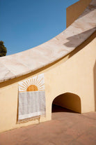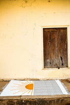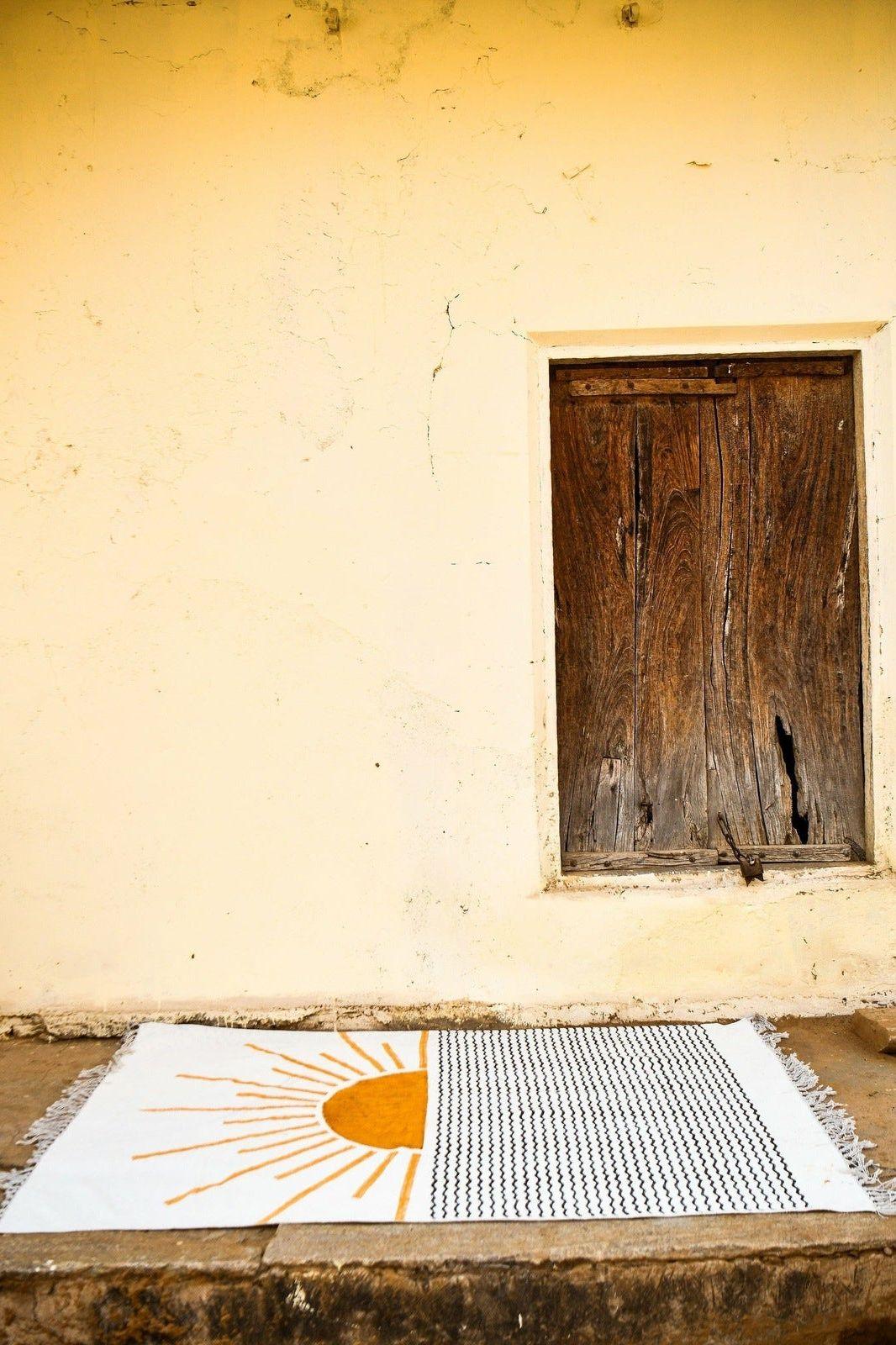 The design is hand-pressed onto each rug using hand-carved wooden blocks dipped in dyes. All rugs are made in small batches.