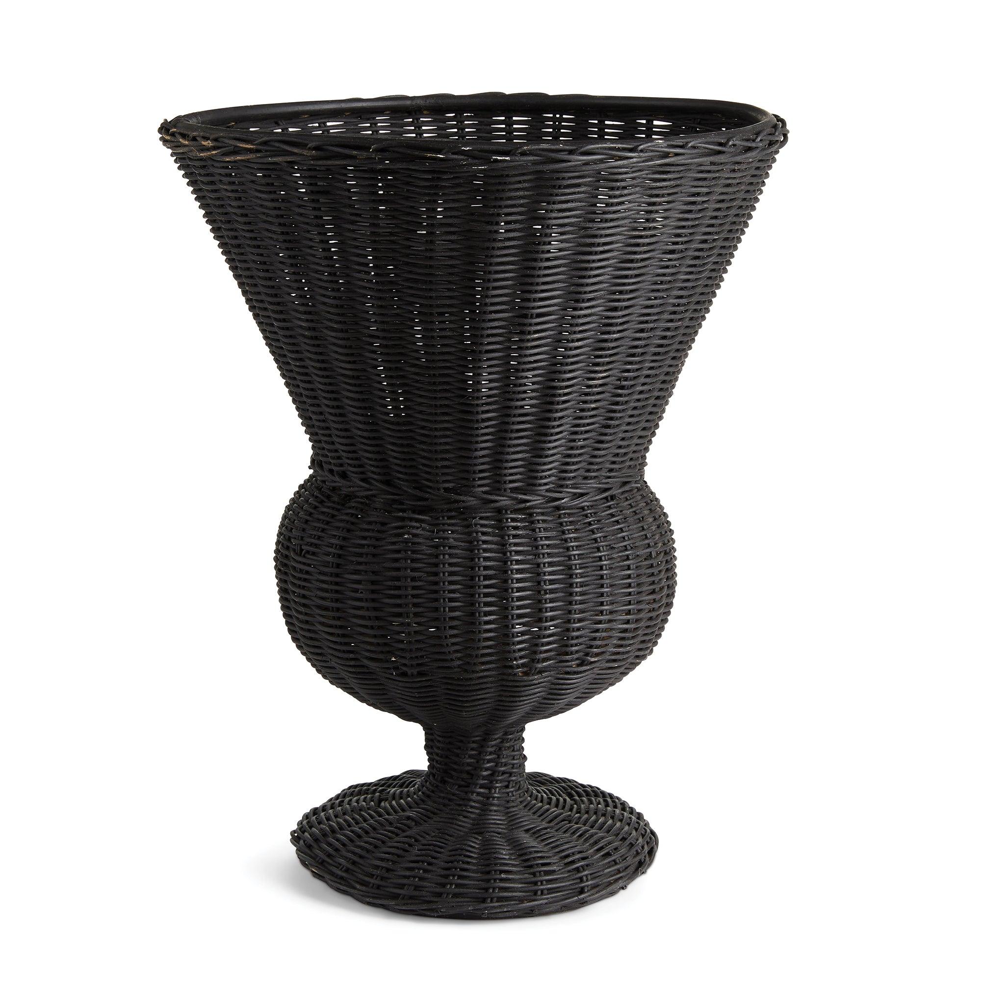 Woven in the form of a classical ceramic urn, this statuesque wicker vessel is an unexpected look. Display just as it is, or fill it with a faux drop-in for a more lush look. A charming accent for covered porch, foyer or entryway.