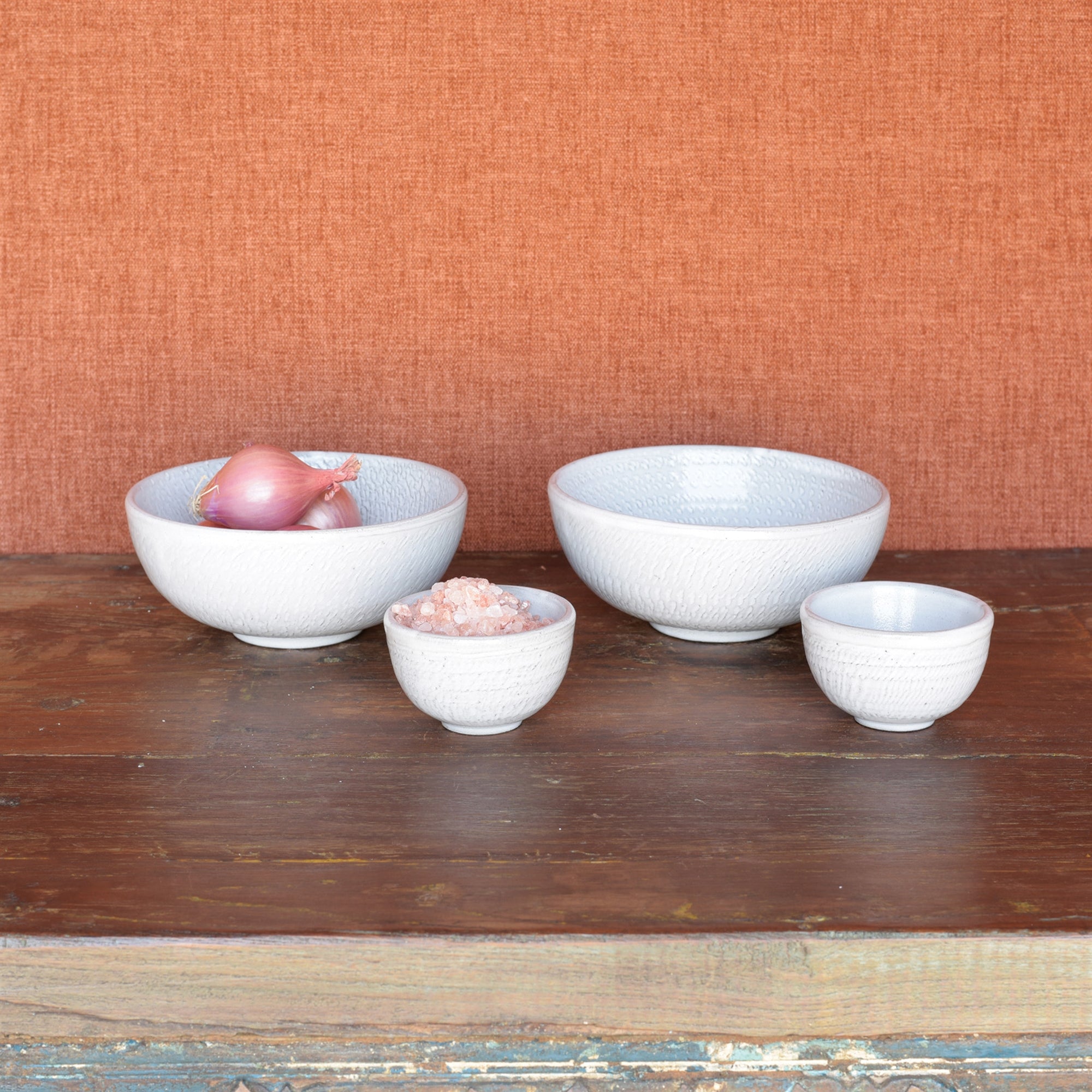 Black terra cotta is given a unique, hand applied texture on the pottery wheel, which becomes more visually pronounced after a dip in our signature white glaze. Food, dishwasher and microwave safe.