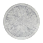 Add a stylish, modern touch to your décor with this round etched metal tray. Featuring cool gray and white tones with a distressed painted design and glossy glazed finish, this tray offers a sleek, sophisticated look. The modern textured starburst design adds depth and texture, making it the perfect centerpiece for your coffee table, end table, or kitchen. Use it to display vases, candles, or novelty décor, or fill it with fresh fruit or sweet treats when entertaining guests. A versatile piece that complements any home décor style.