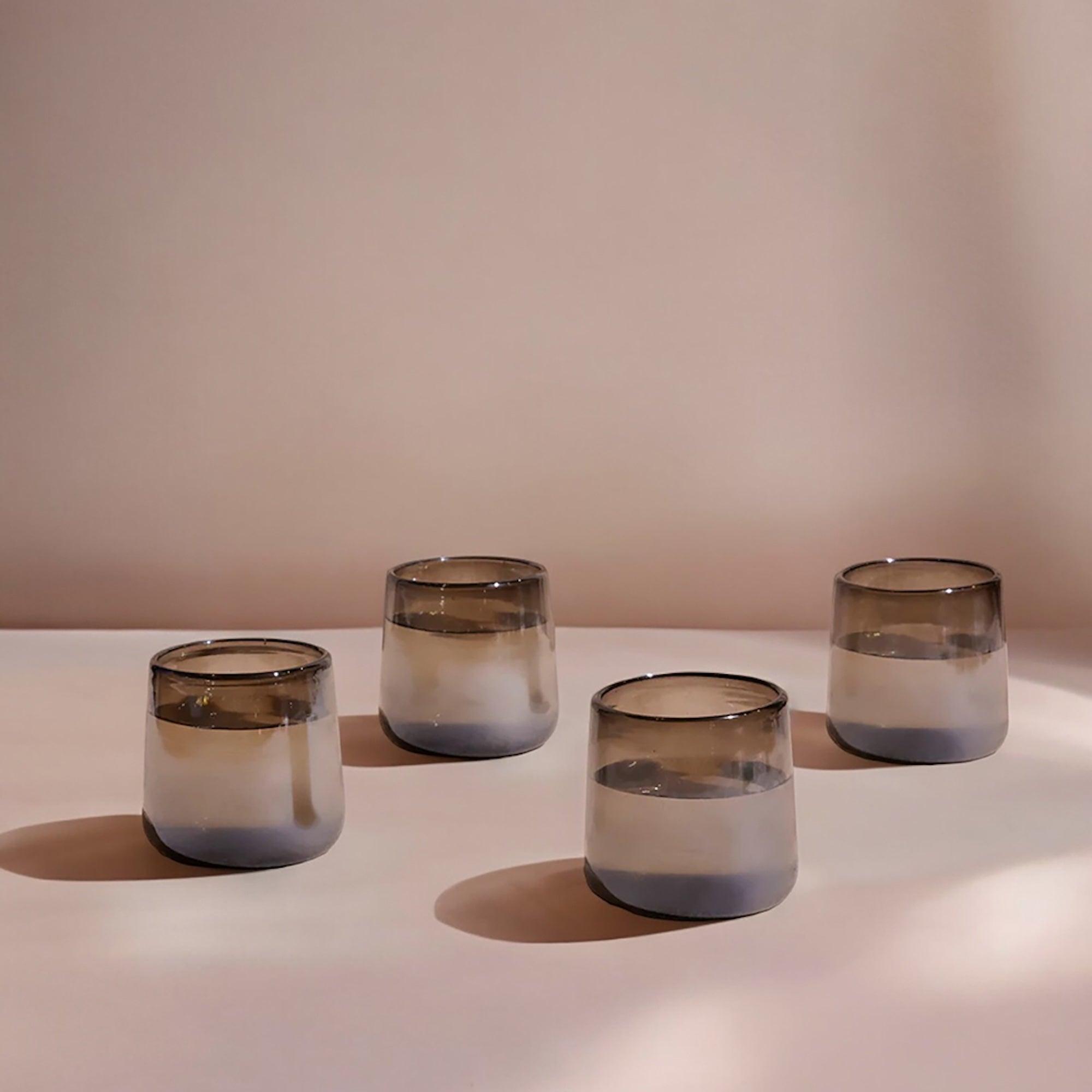 Smoke and Luster Recycled DOF Glassware, Set of Four, Mouthblown in Mexico.