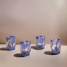 Short Clear and Blue Glass, Set of Four, Mouthblown in Mexico.