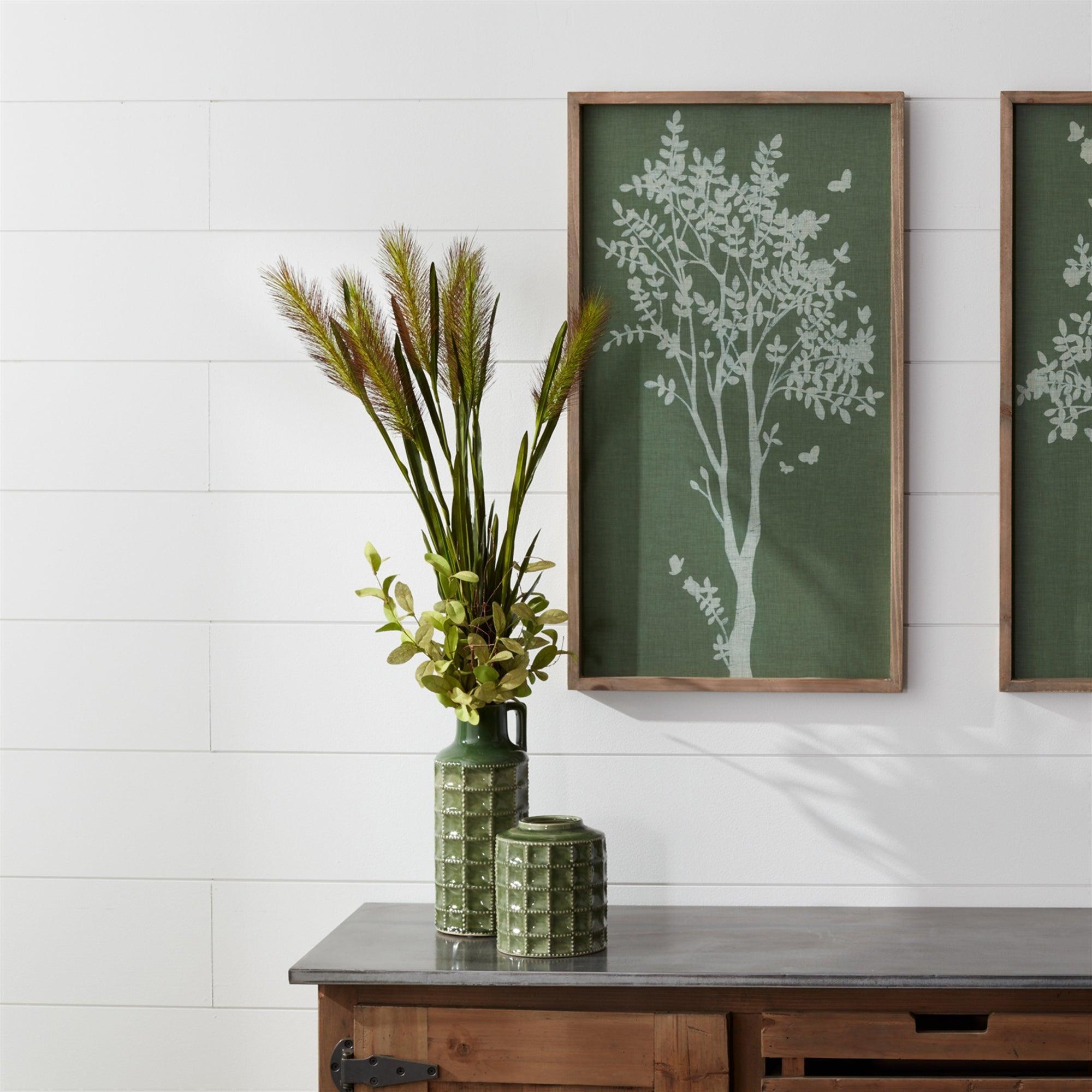 Enhance your home decor with this elegant Glazed Decorative Terracotta Vase. The deep green tones paired with the geometric patterned texture is the perfect combination to create a stunning display. The quality terracotta and glaze finish is sure to last for seasons to come. Complete the look by adding a bunch of dried or faux florals.