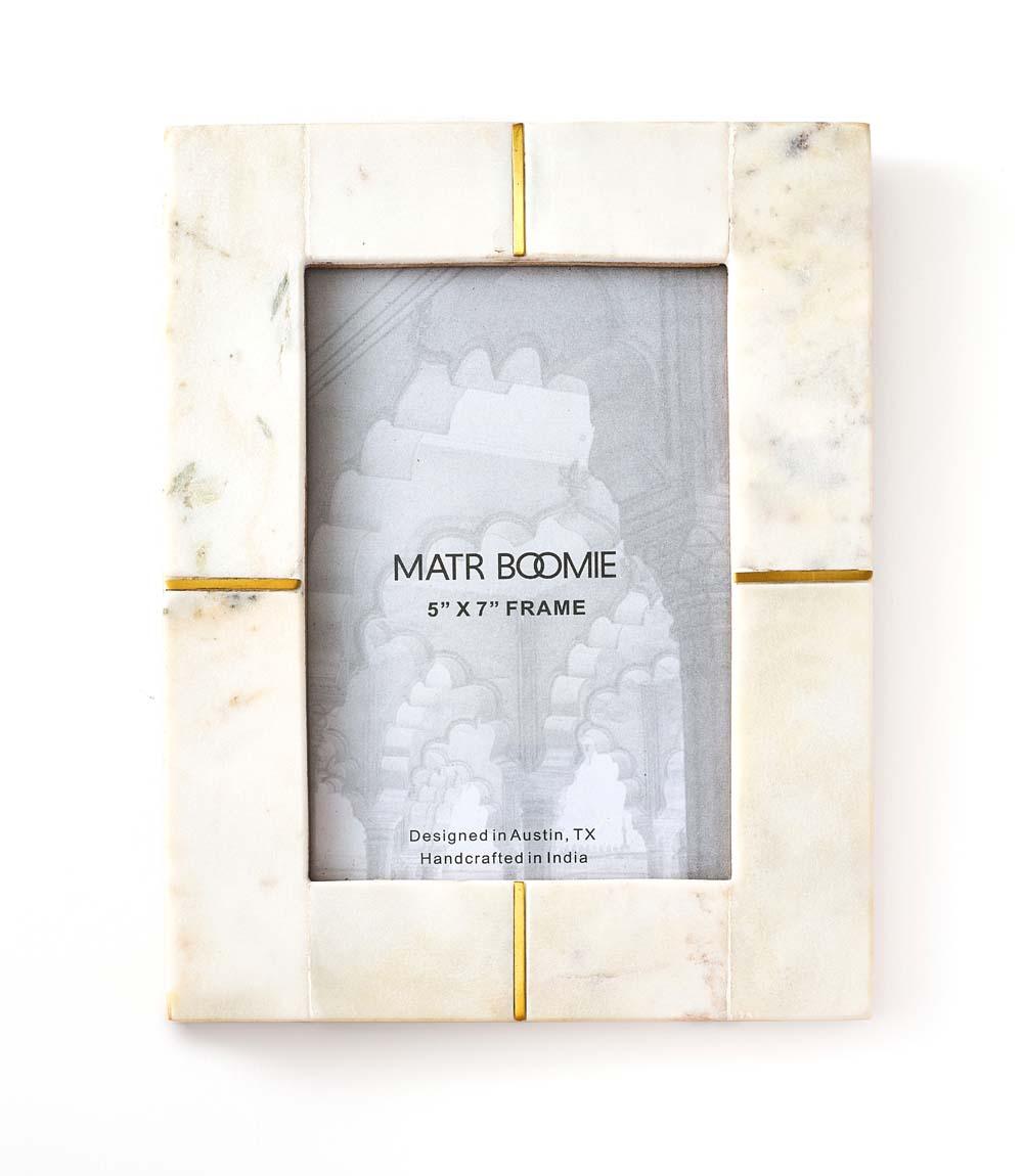 Sammita 5x7 White Picture Frame - Carved Marble Brass Inlay
