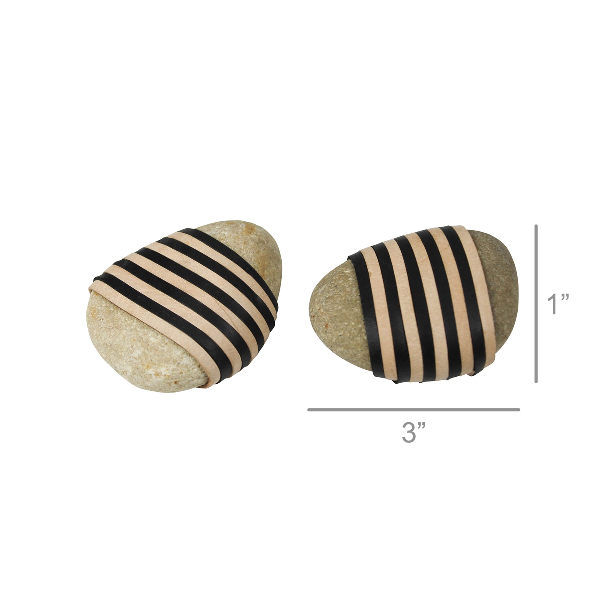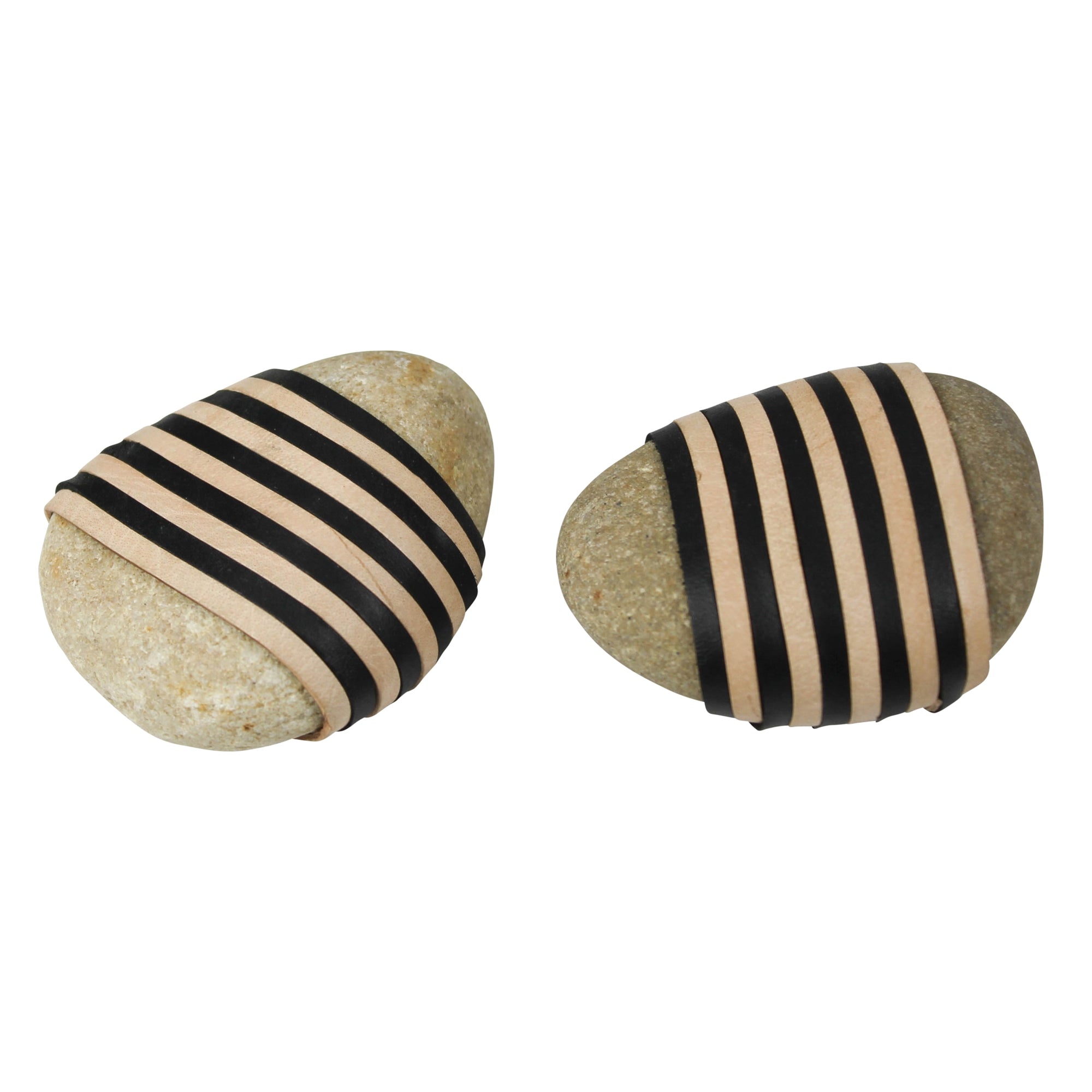 Natural stones are thoughtfully wrapped in two tones of leather offering zen objects which feel as good in the hand as they look on a table. Each stone is natural so size, weight and color will vary.