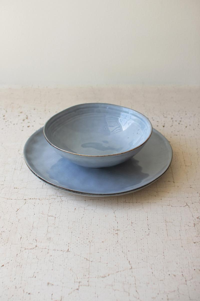 This ceramic plate and bowl set in Cloud suits any table style. Mix and match with other colors to create a unique design or strive for simplicity with this subtle color. Boxes set the table for a crowd.
