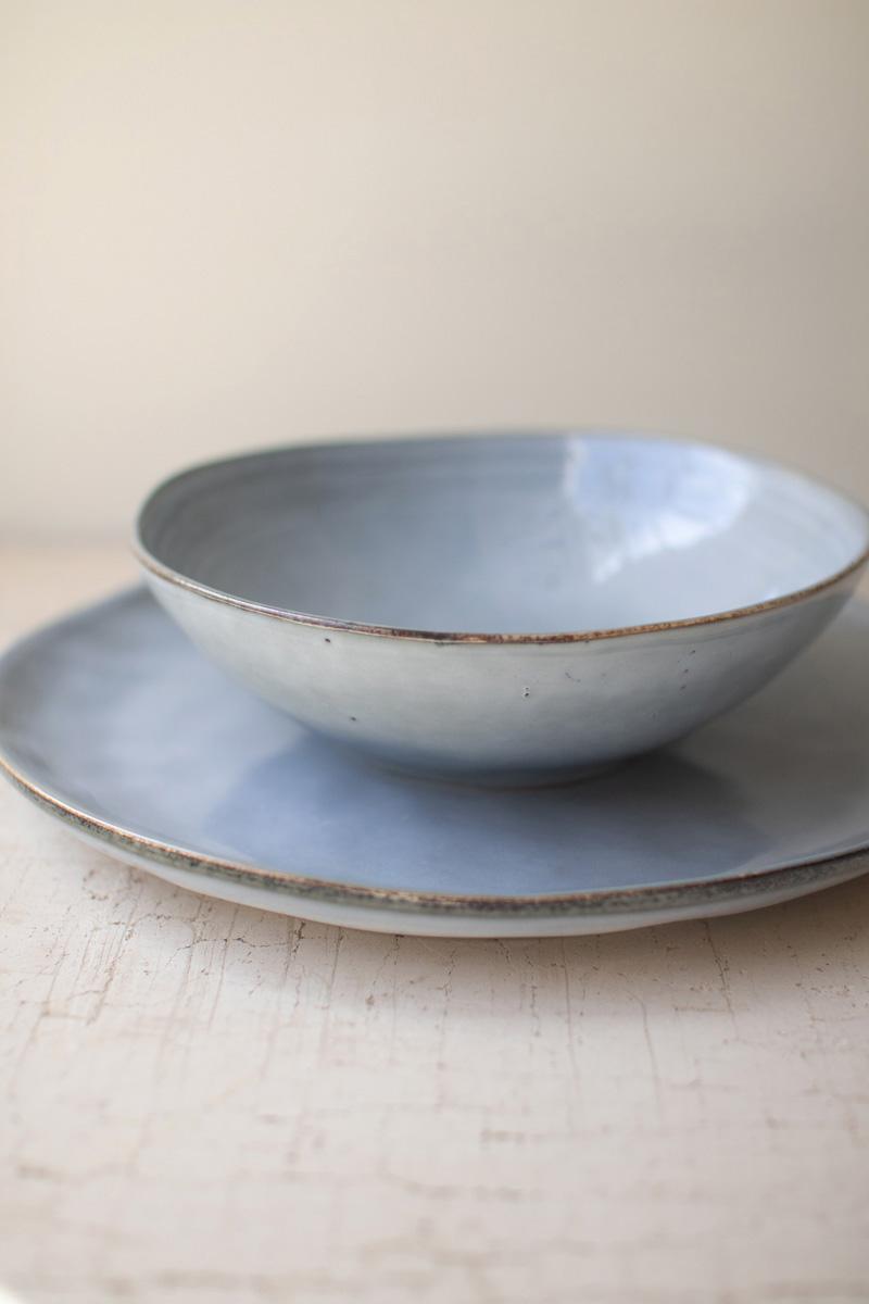 Set Of 12 Cloud Ceramic Dinner Plates And Bowls