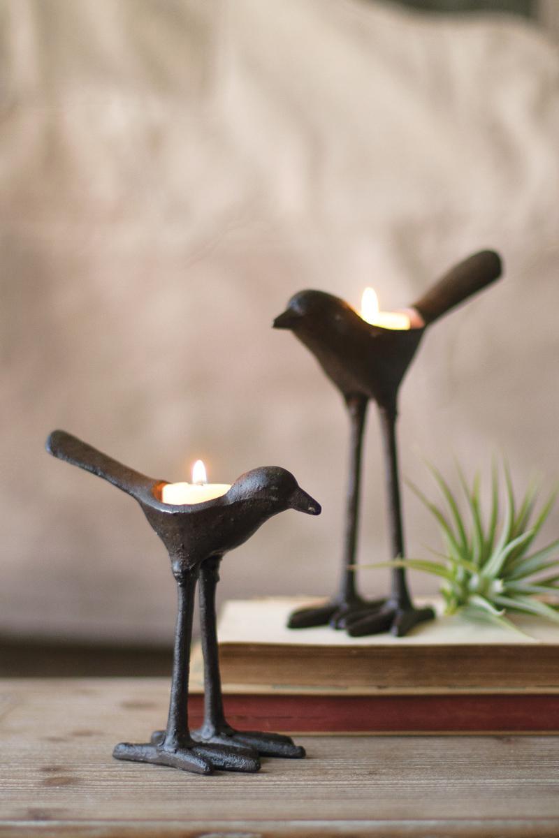 Cute rustic cast iron bird tea light holders come in a set of 2 different sizes and make a great gift for bird lovers!