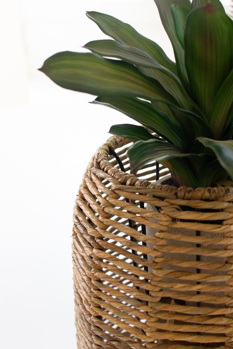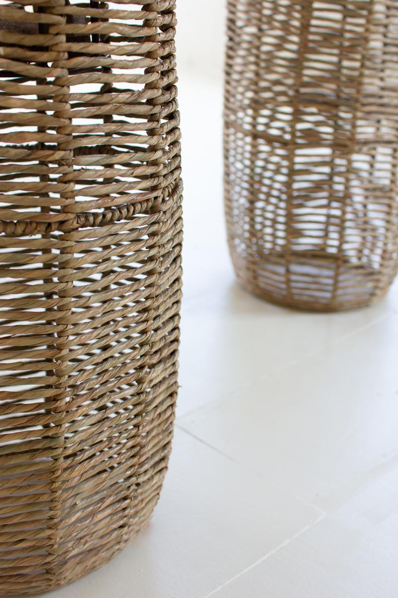 Weave these seagrass barrel planters into your sunroom decor. These Haitian-made woven barrel planters stand 41” and 33” tall and suit any space. Elevate your greenery or keep collections out of sight with this set of handmade planters.