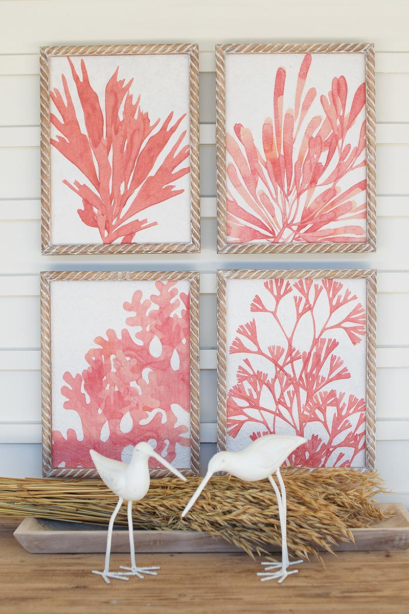 Set Of Four Coral Prints With Wooden Frames
