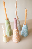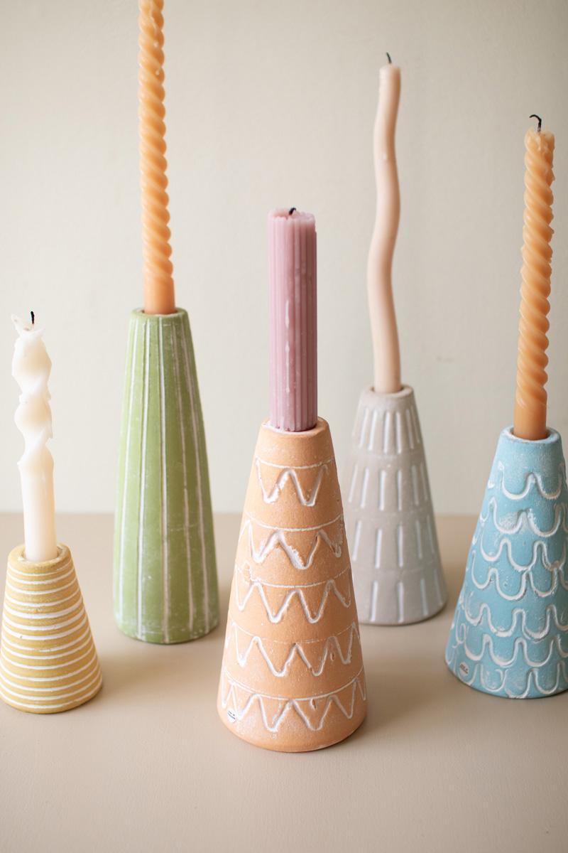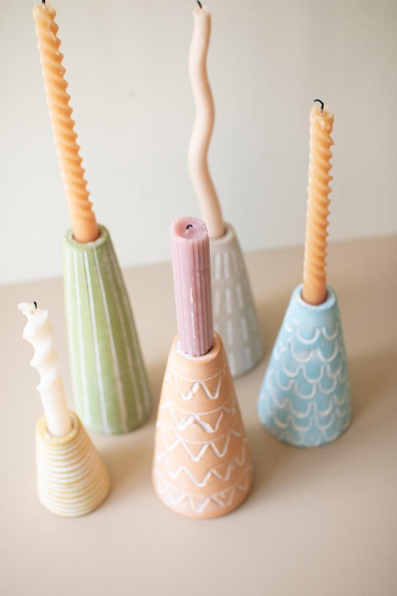 Set Of Five Assor Painted Clay Party Hat Taper Holders
