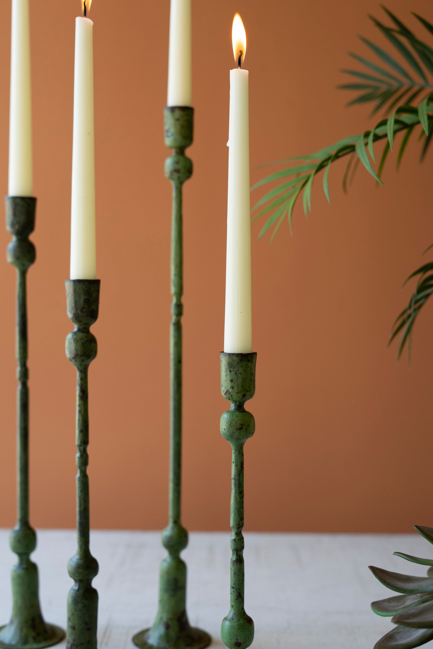 Set Of Four Forged Iron Taper Candle Holders Green Patina (Pack Of 2)