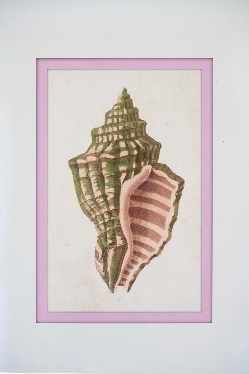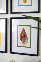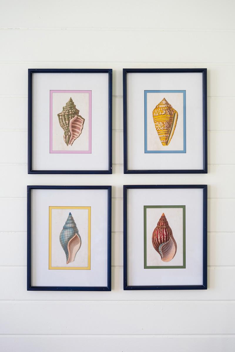 Add some color to your sandcastle. This set of four framed shell prints under glass features colorful shells framed by a contrasting matte in black frames. Arrange this set in a square or a vertical or horizontal line. Printed Mat. One sawtooth hanger each. Only hangs vertically.