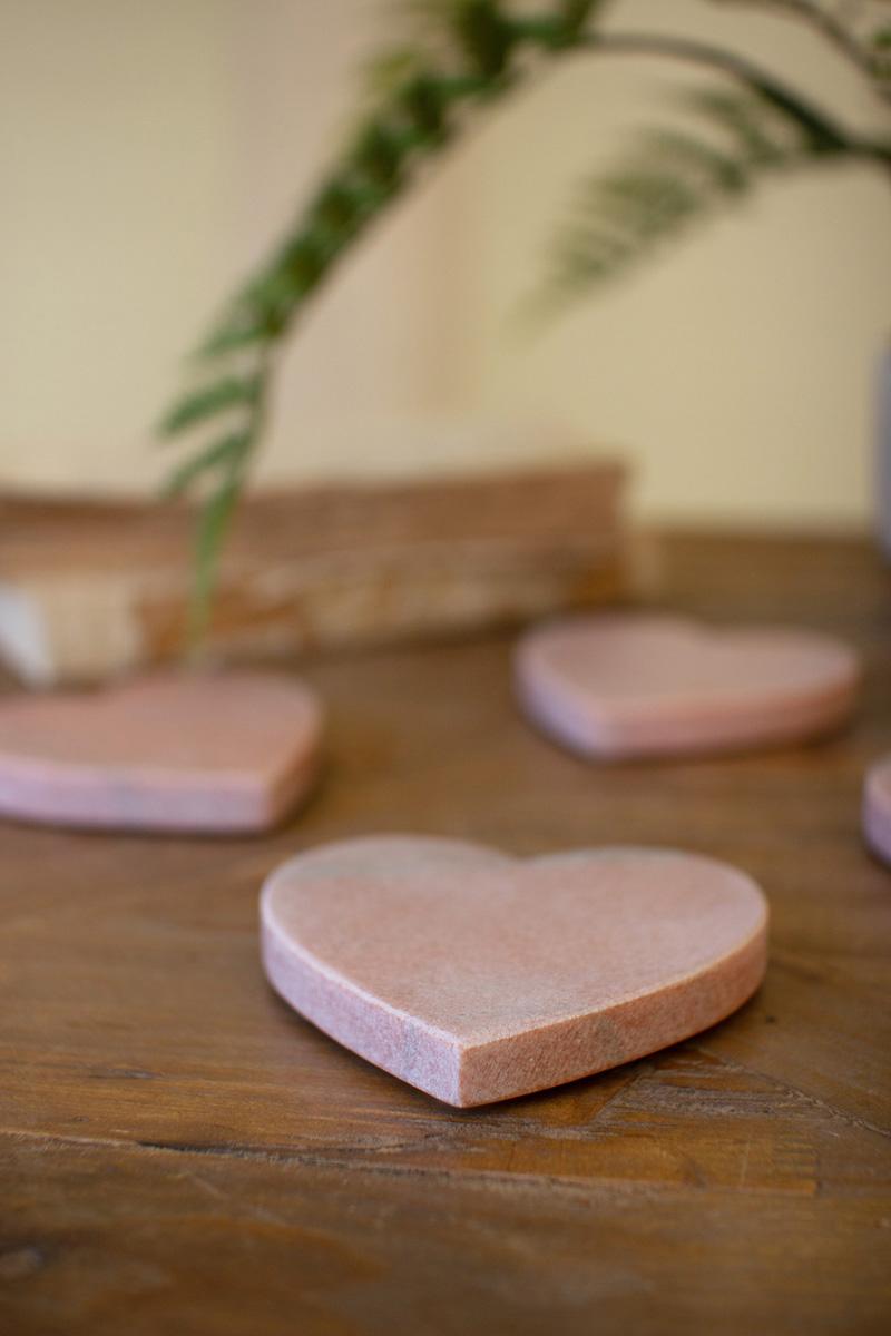 Set Of Four Pink Marble Heart Coasters (Pack Of 4)