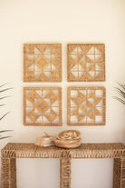 Set Of Four Seagrass And Iron Quilt Pattern Wall Art