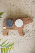- Set includes 4 pieces. 2 marble salt cellars with lids, 1 metal spoon, and 1 wooden bear tray