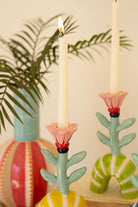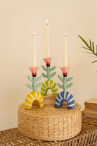Set Of Three Ceramic Flower Taper Candle Holders One Each