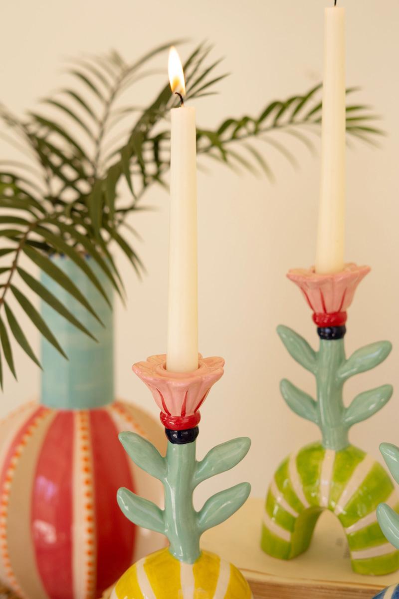 Set Of Three Ceramic Flower Taper Candle Holders One Each (Pack Of 2)