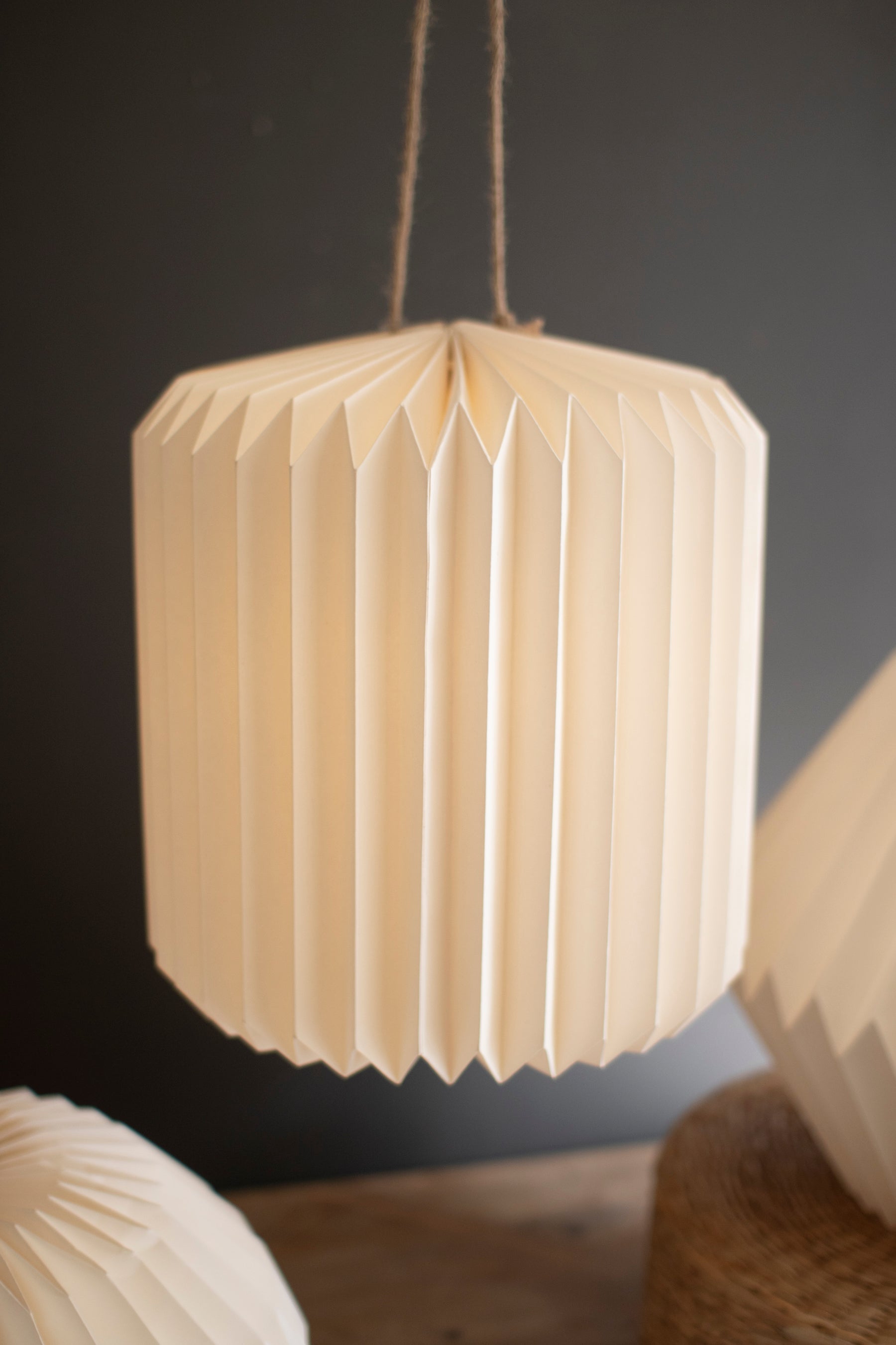 Hang this set of three at different heights for a surprising arrangement. Split this trio between rooms or areas or keep them all together. These folding paper pendant lights add whimsy and charm to any area. Light kit (not included) can be added for a festive display. Lanterns fold flat for easy storage and connect with a magnet.