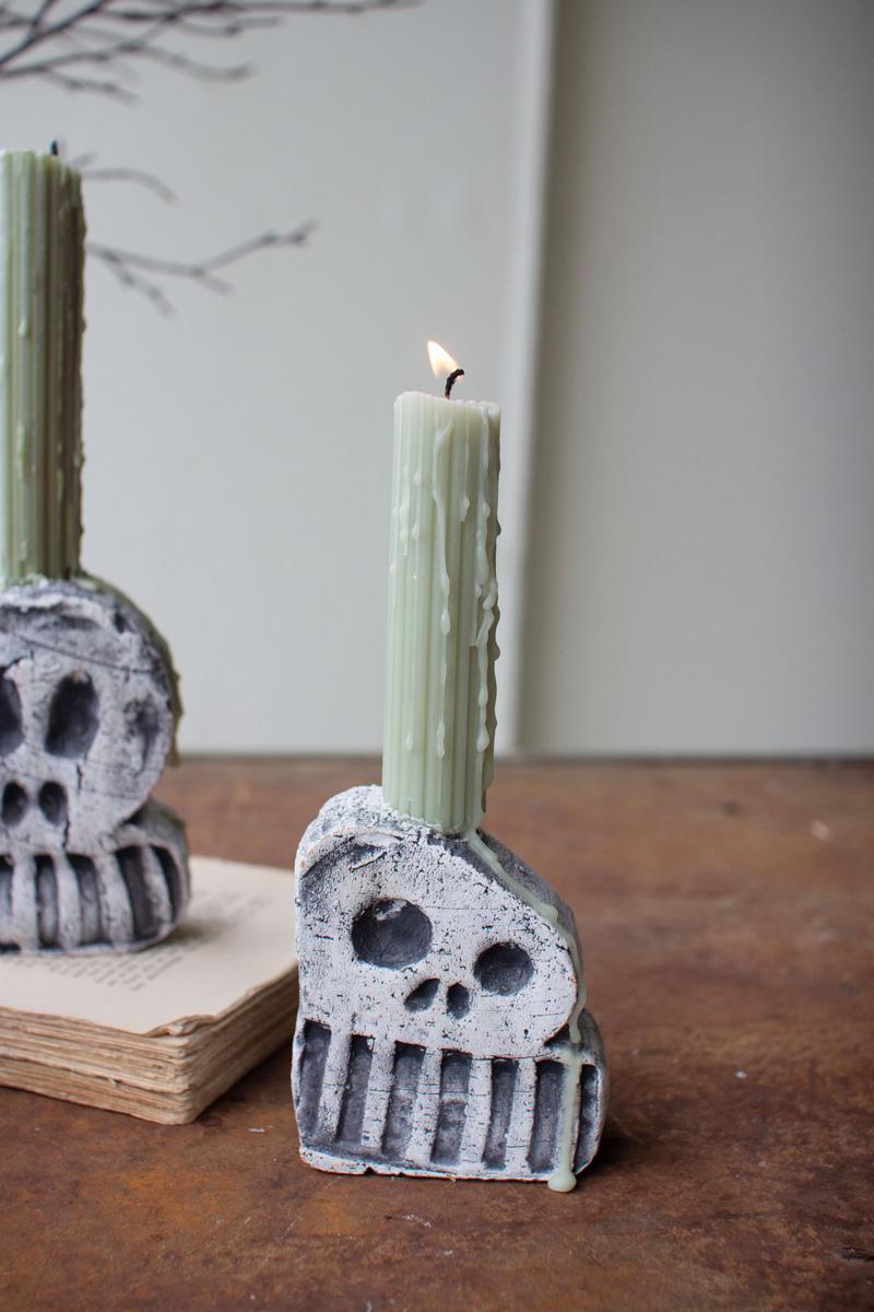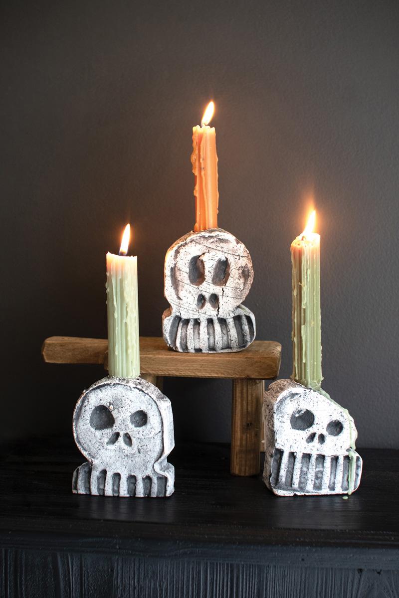 Set Of Three Halloween Skull Taper Candle Holders (Pack Of 2)