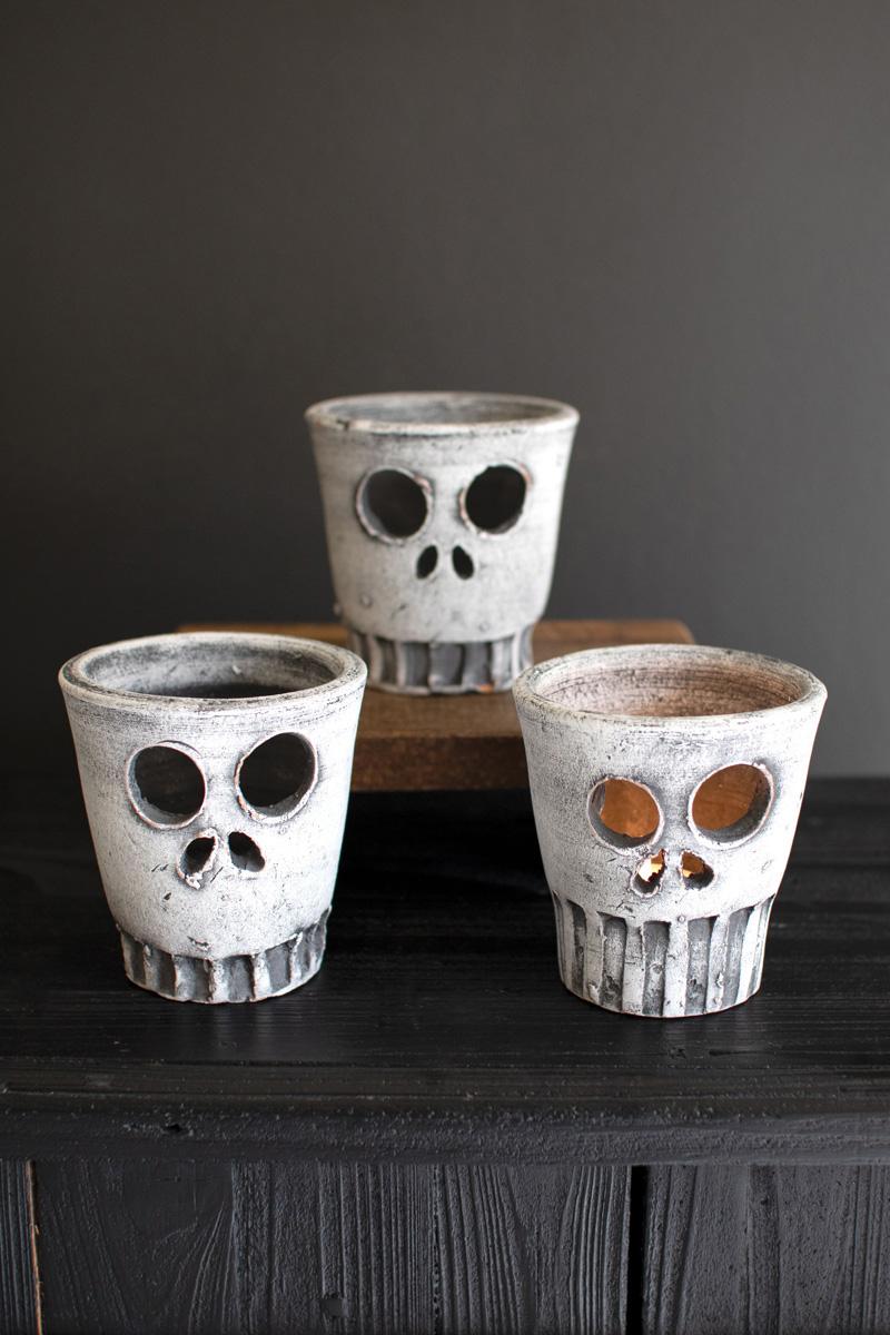 Set Of Three Halloween Skull Vases (Pack Of 2)