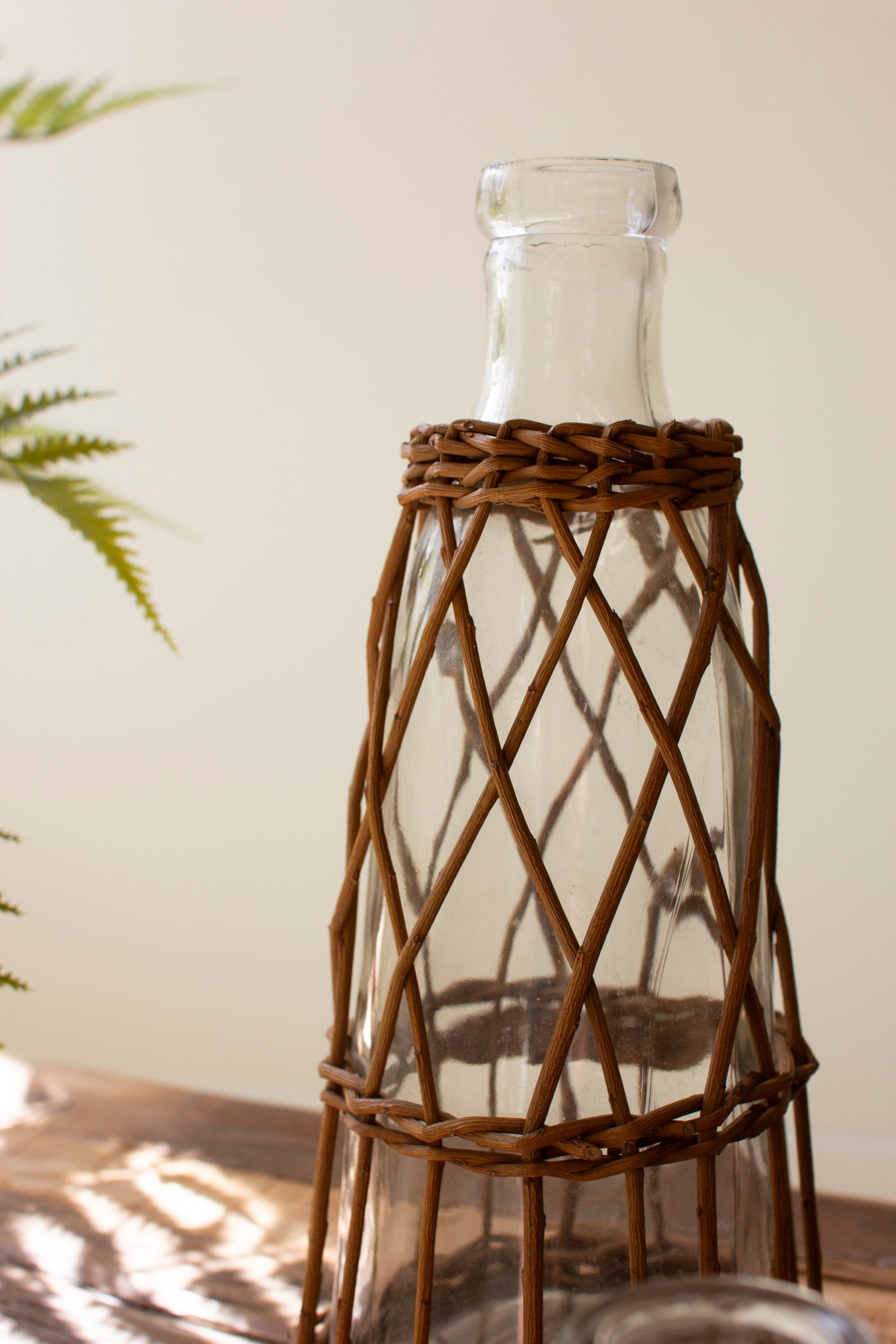 This set of three wicker-wrapped glass bud vases makes a great gift. These three vases in unusual styles are wrapped in stylish wicker. Gift a set or save it for your windowsill.