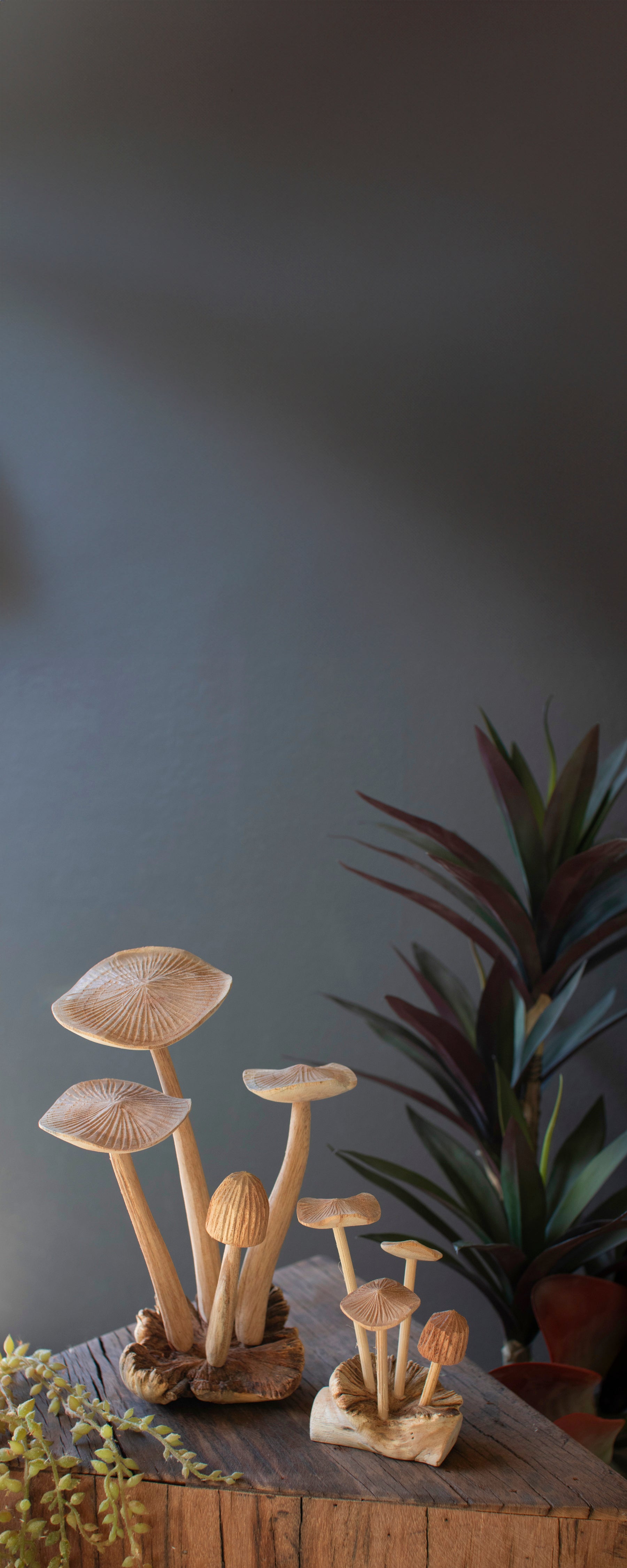 Handmade in Indonesia, these carved teakwood mushrooms look realistic. Plant them among your succulents or garden area for a woodsy feel. This set of two features multiple mushroom sprouts. Handcrafted by skilled artisans in Indonesia.
