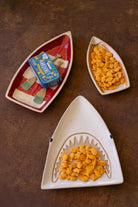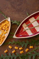 It's a pair of boat platters! Load these boats with chips or dip, or let them float for decor. Made of glazed ceramic, the set comes with one of each design.