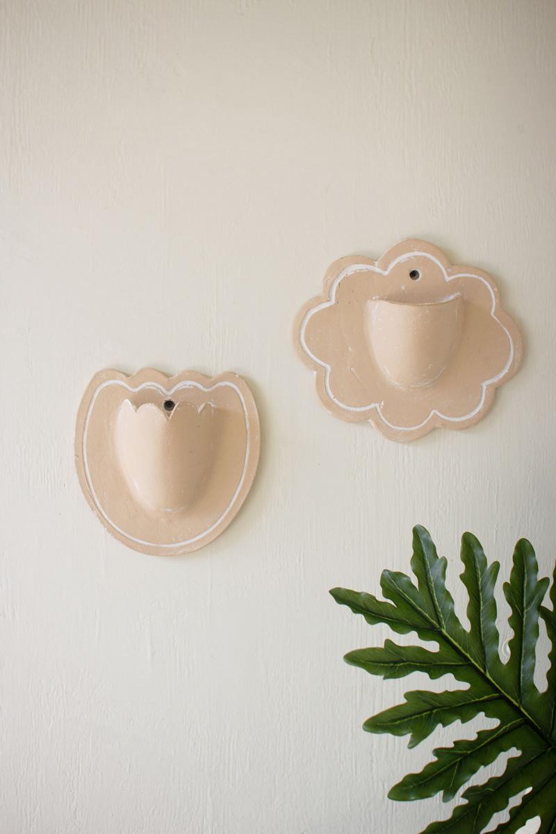 Set Of Two Clay Flower Wall Planters White Wash (Pack Of 2)