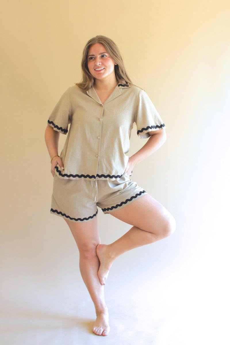 Set Of Two Drawstring Shorts And Top With Ric Rac Oatmeal/Midnight From Nell1041,43