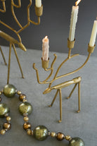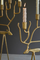 Set Of Two Forged Christmas Deer Taper Candelabras Antique Gold