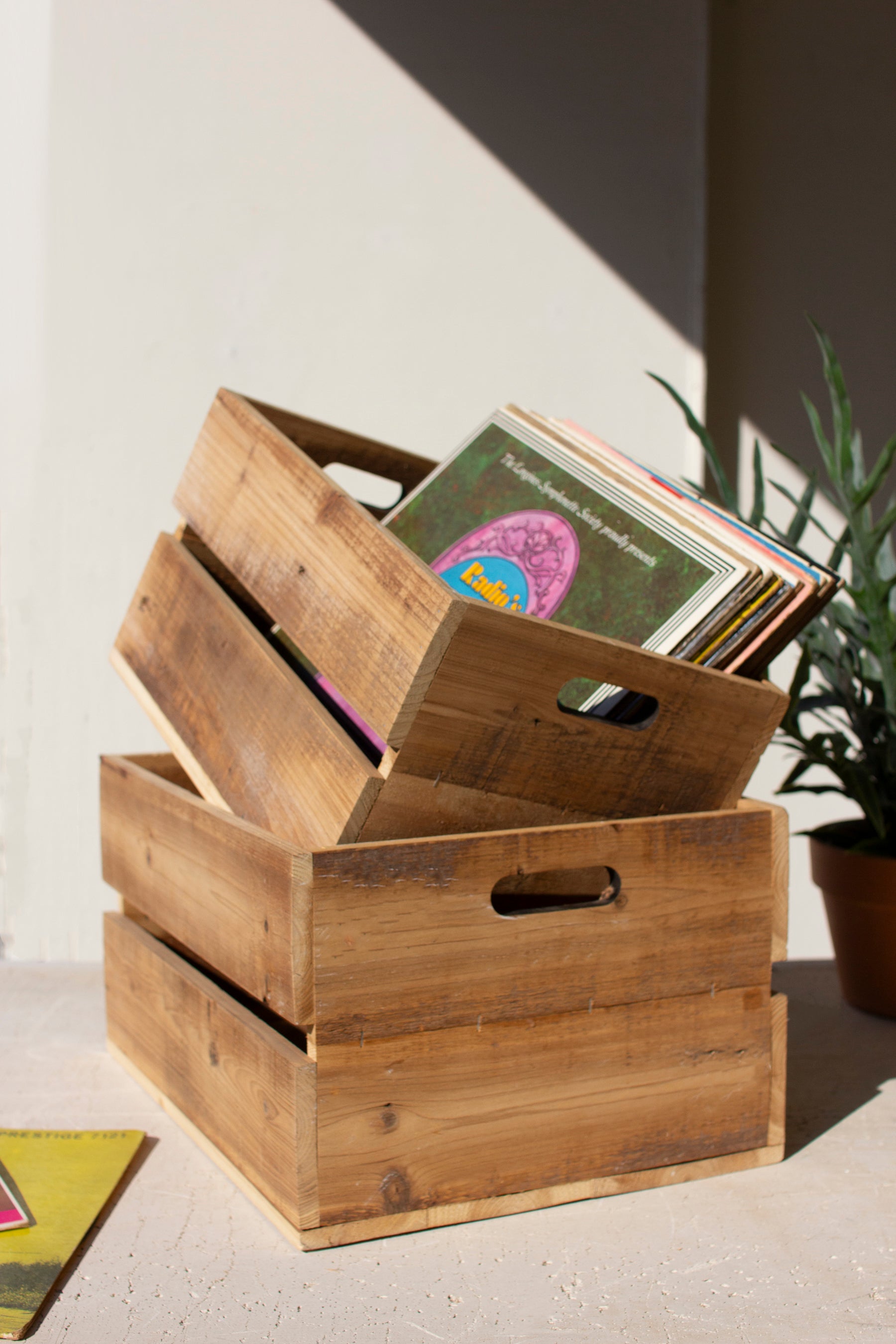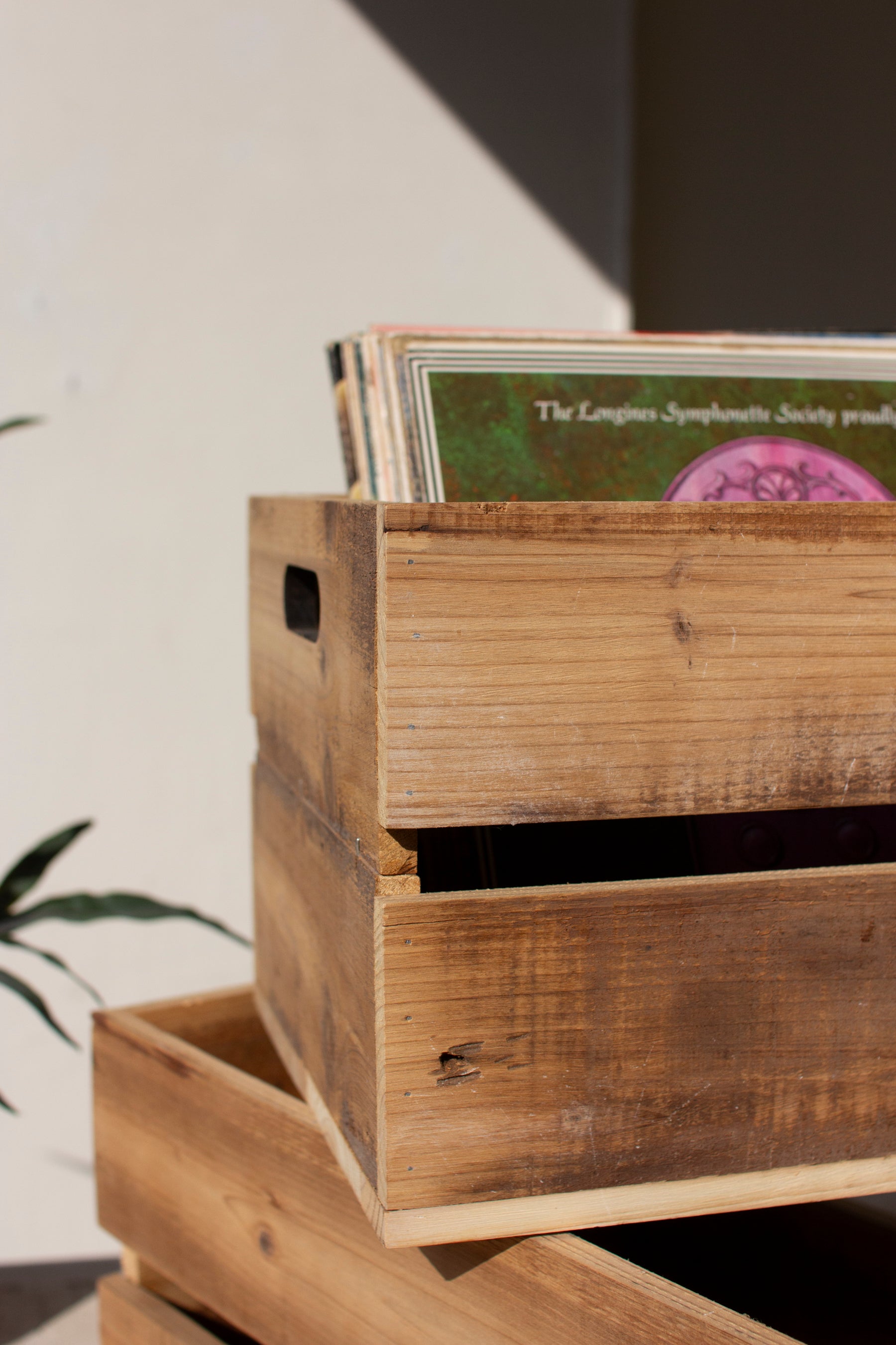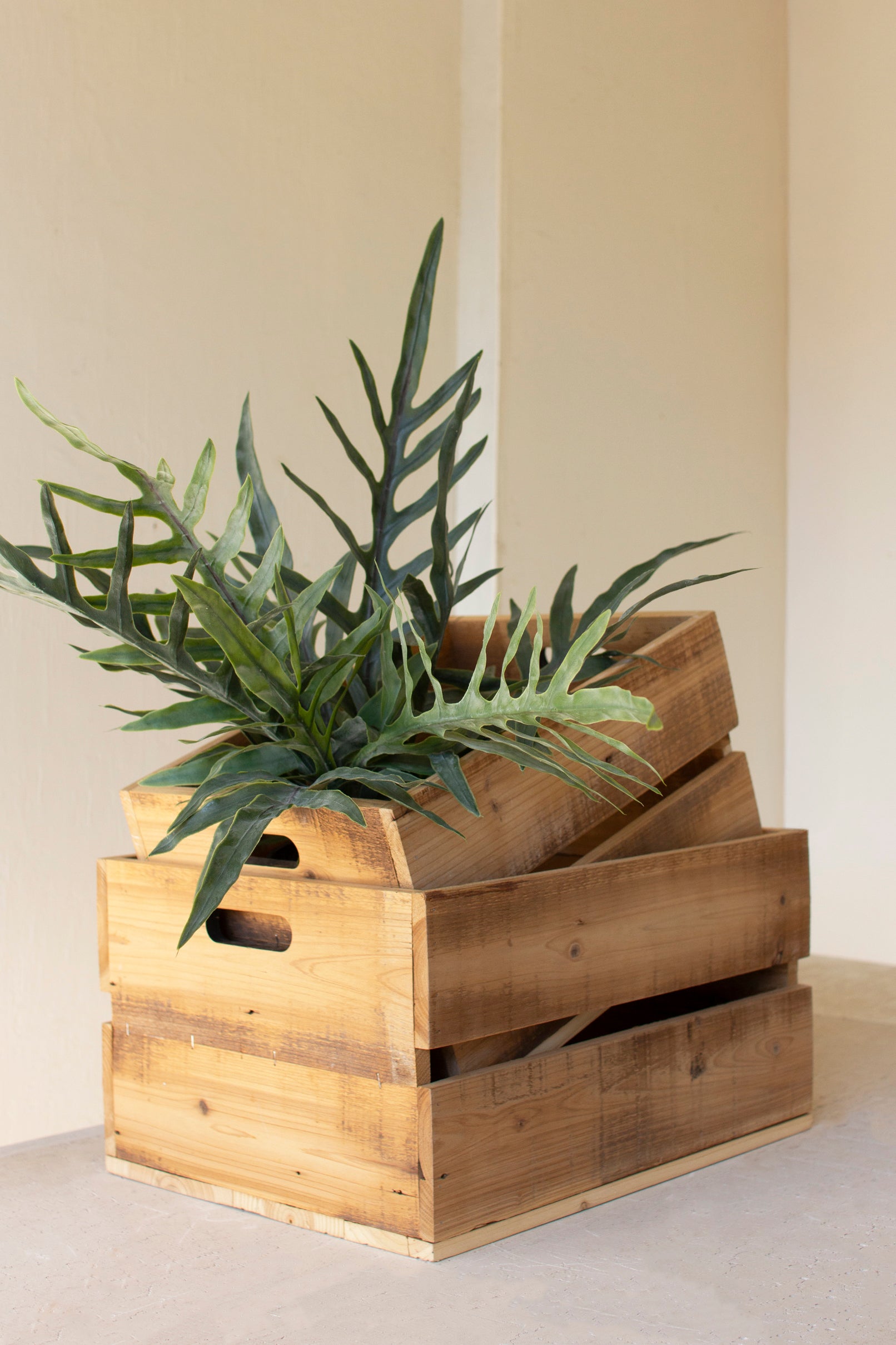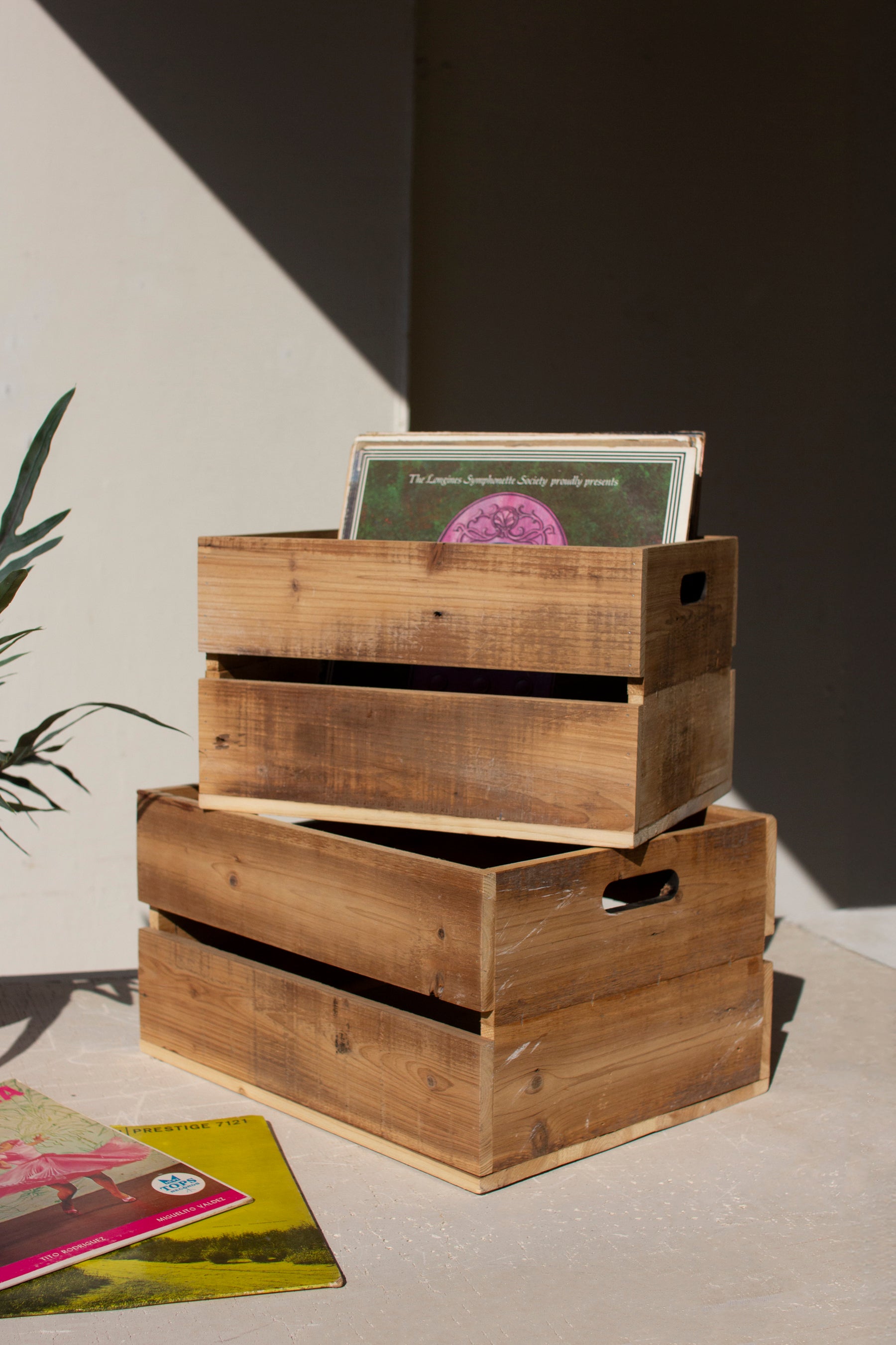 Set Of Two Slatted Wooden Crates Natural Finish (Pack Of 2)