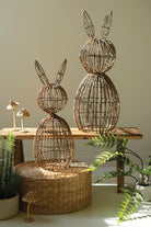 Show that Springtime is on its way with this set of two wire rabbits. Prop them on the porch or let them gather in the garden area to celebrate the season. These rabbits are also suitable for year-round decor.  Open bottom.
