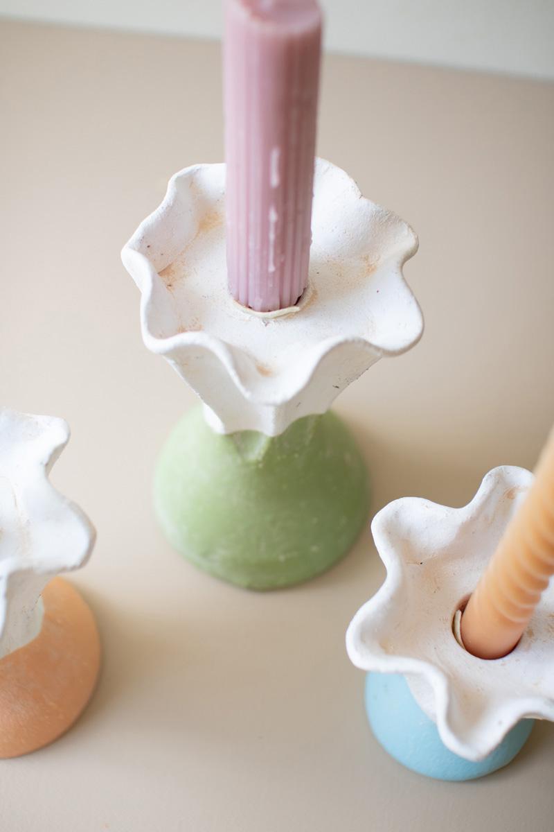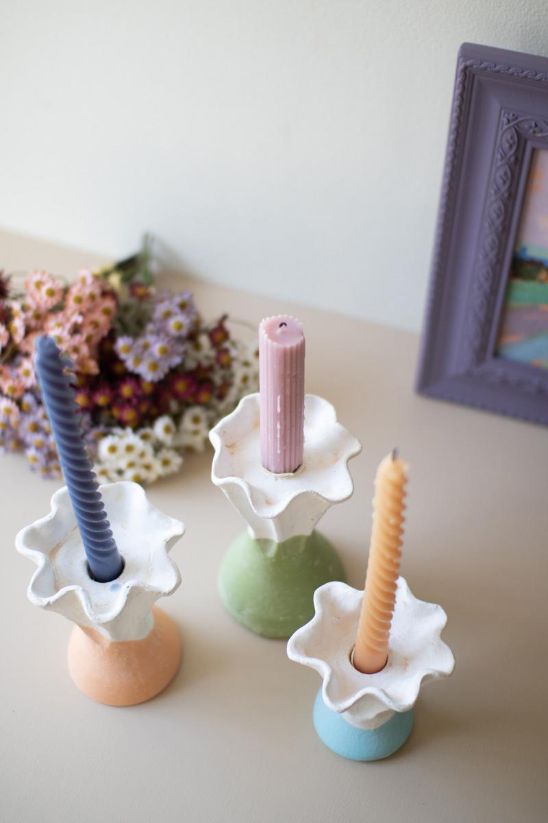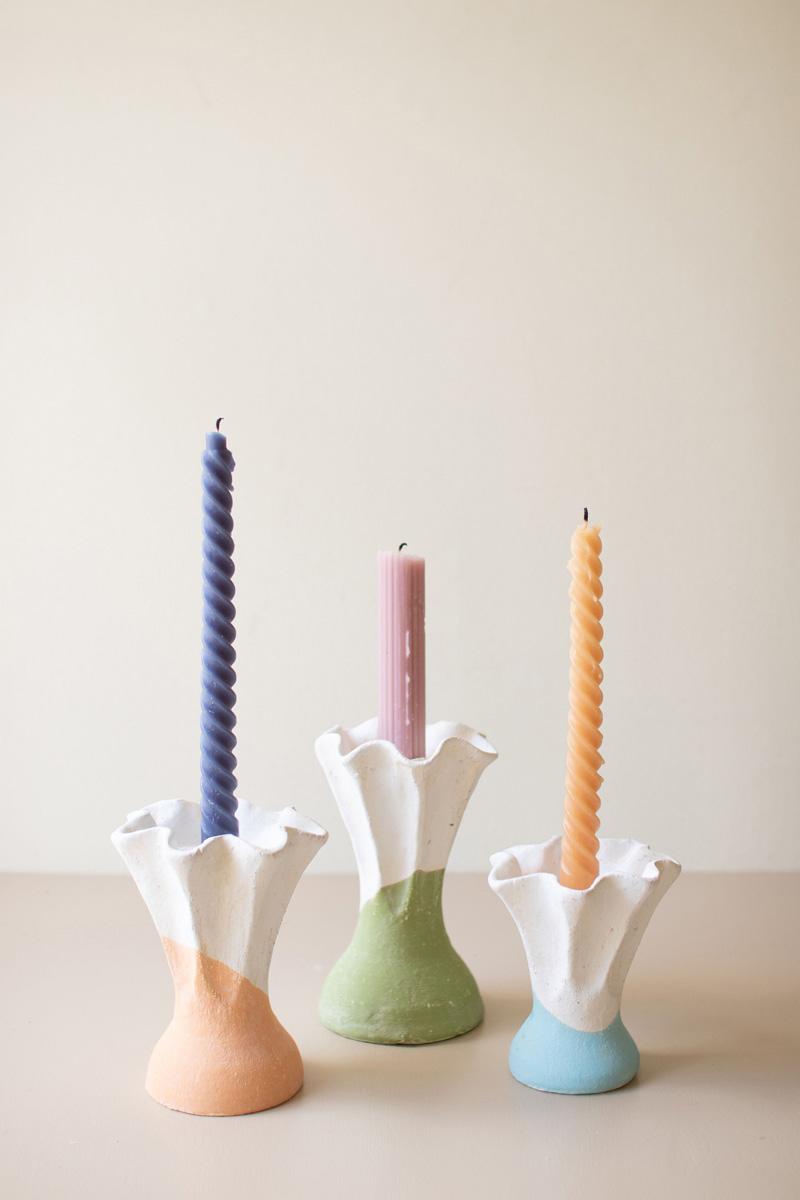 Set Three Color Dipped Clay Flower Taper Holders