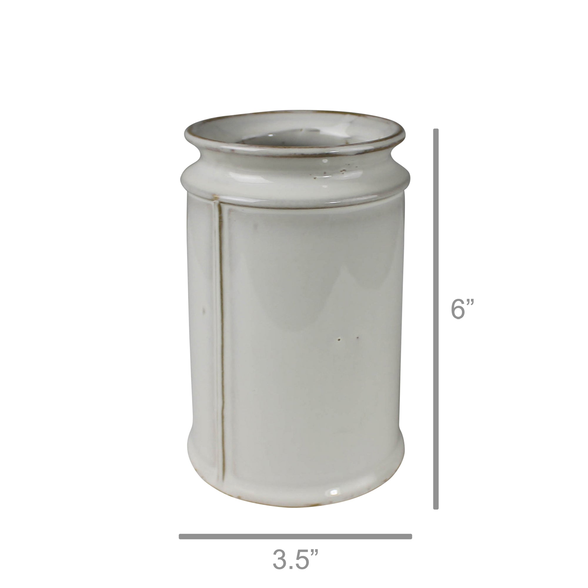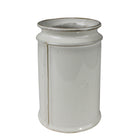 A perfectly proportioned ceramic vase for a bouquet, the cylindrical shape and slight flared edge hold stems upright while the gloss glaze and seam on the side offers detail to compliment, not distract from its contents.