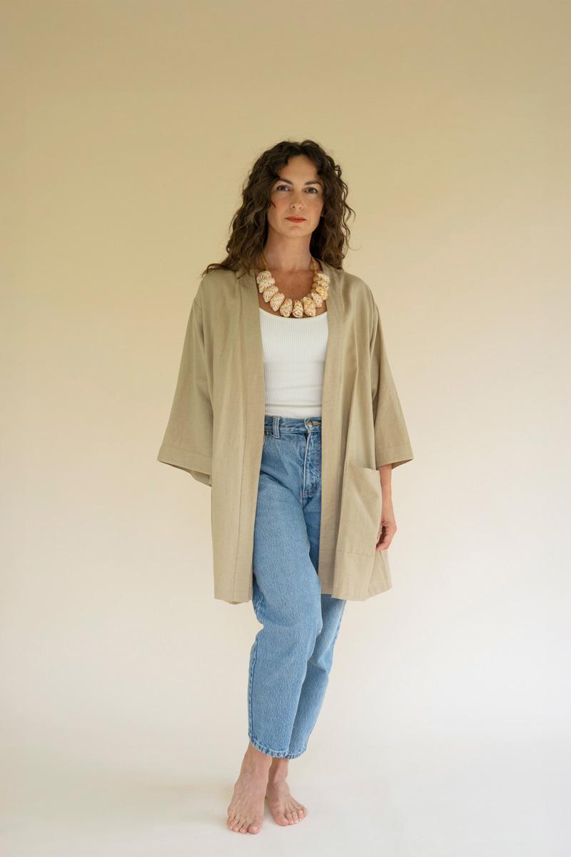 Short Kimono With Front Pockets Oatmeal (Pack Of 3)