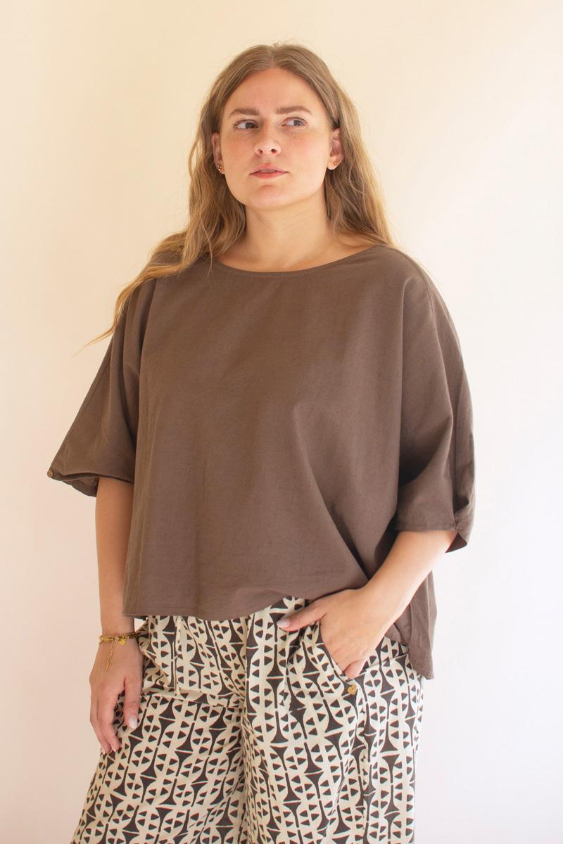 Short Sleeve Blouse With Button Detail On Sleeves Oregano (Pack Of 3)