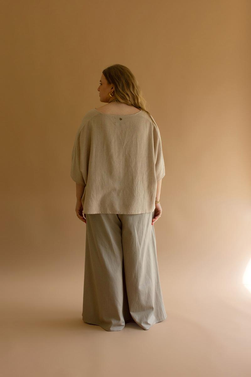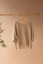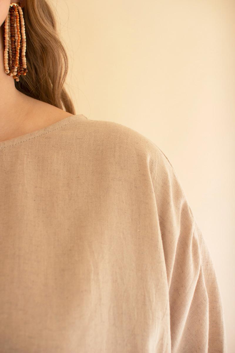 Short Sleeve Blouse With Button On Sleeves Oatmeal