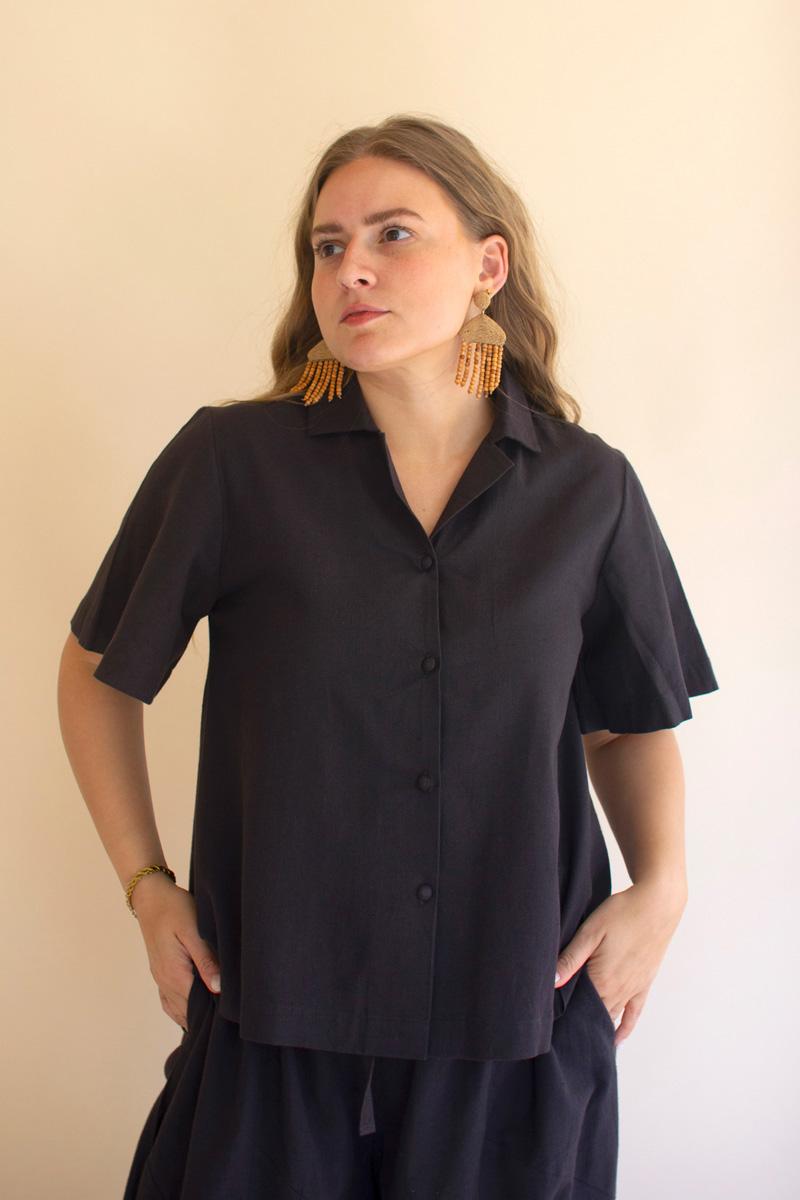 Short Sleeve Buttondown Blouse With Collar Midnight (Pack Of 3)
