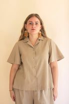 Short Sleeve Buttondown Blouse With Collar Oatmeal (Pack Of 3)