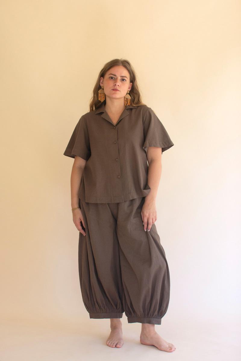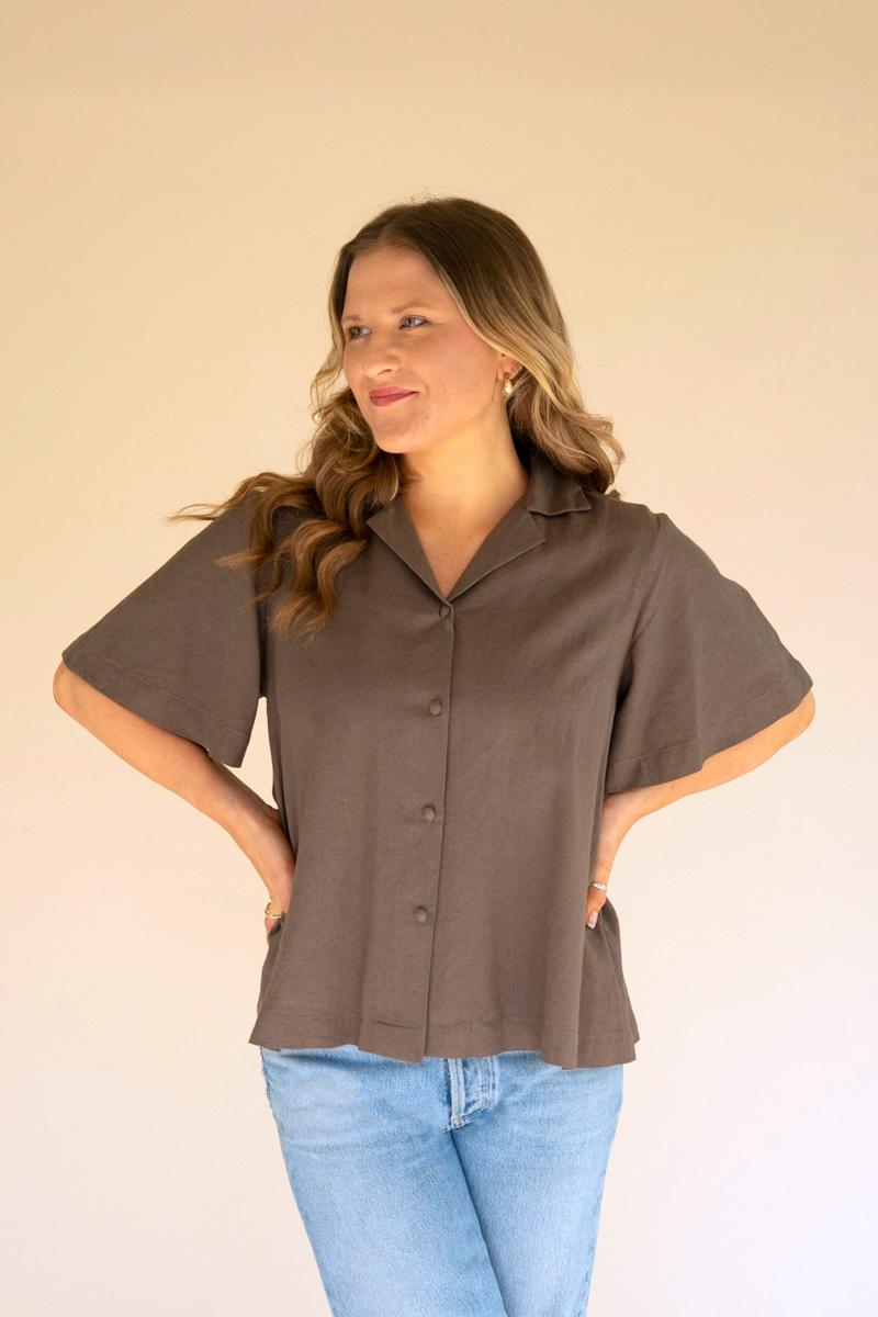 Short Sleeve Buttondown Blouse With Collar Oregano