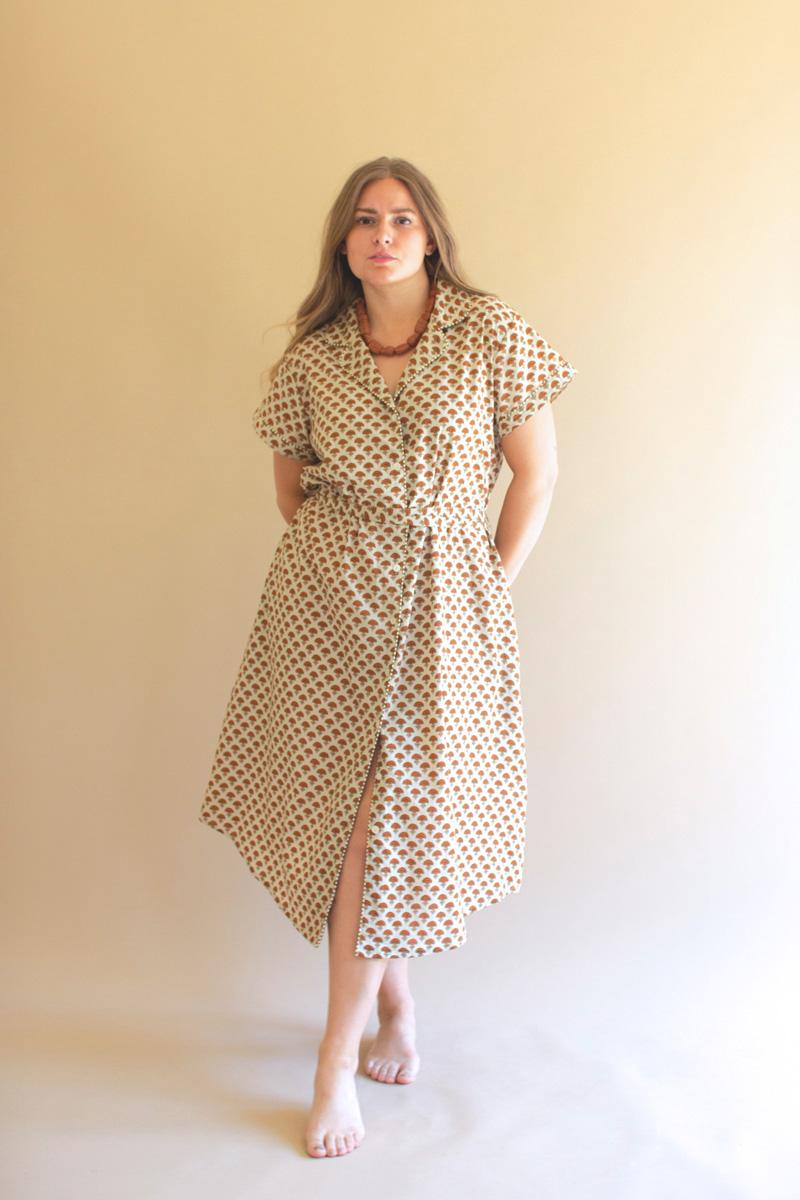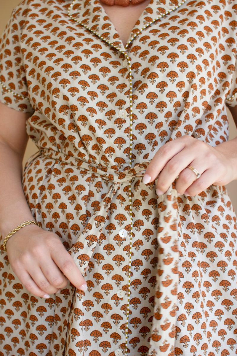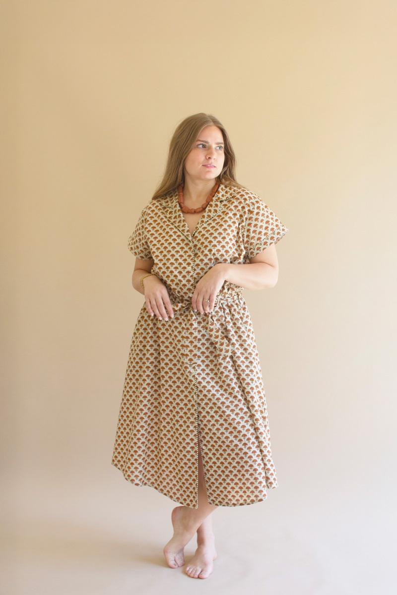 Short Sleeve Printed Buttondown Dress With Trim Brown Osfm (Pack Of 3)