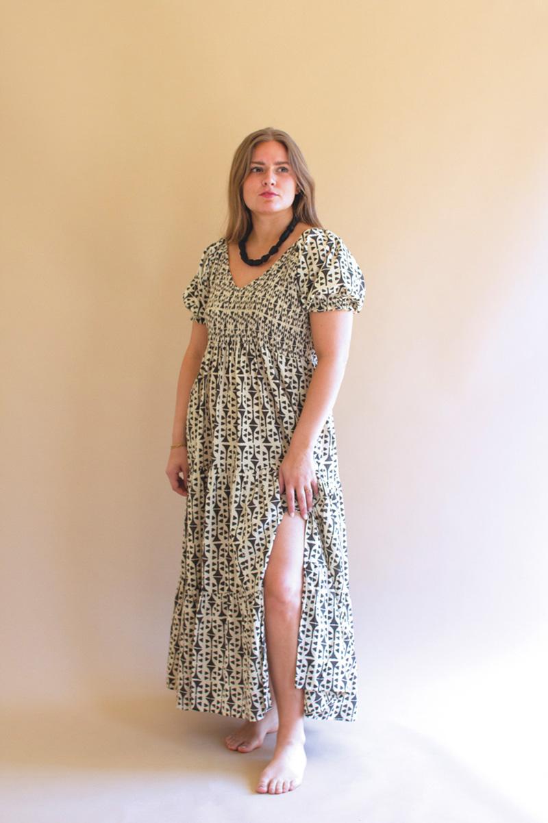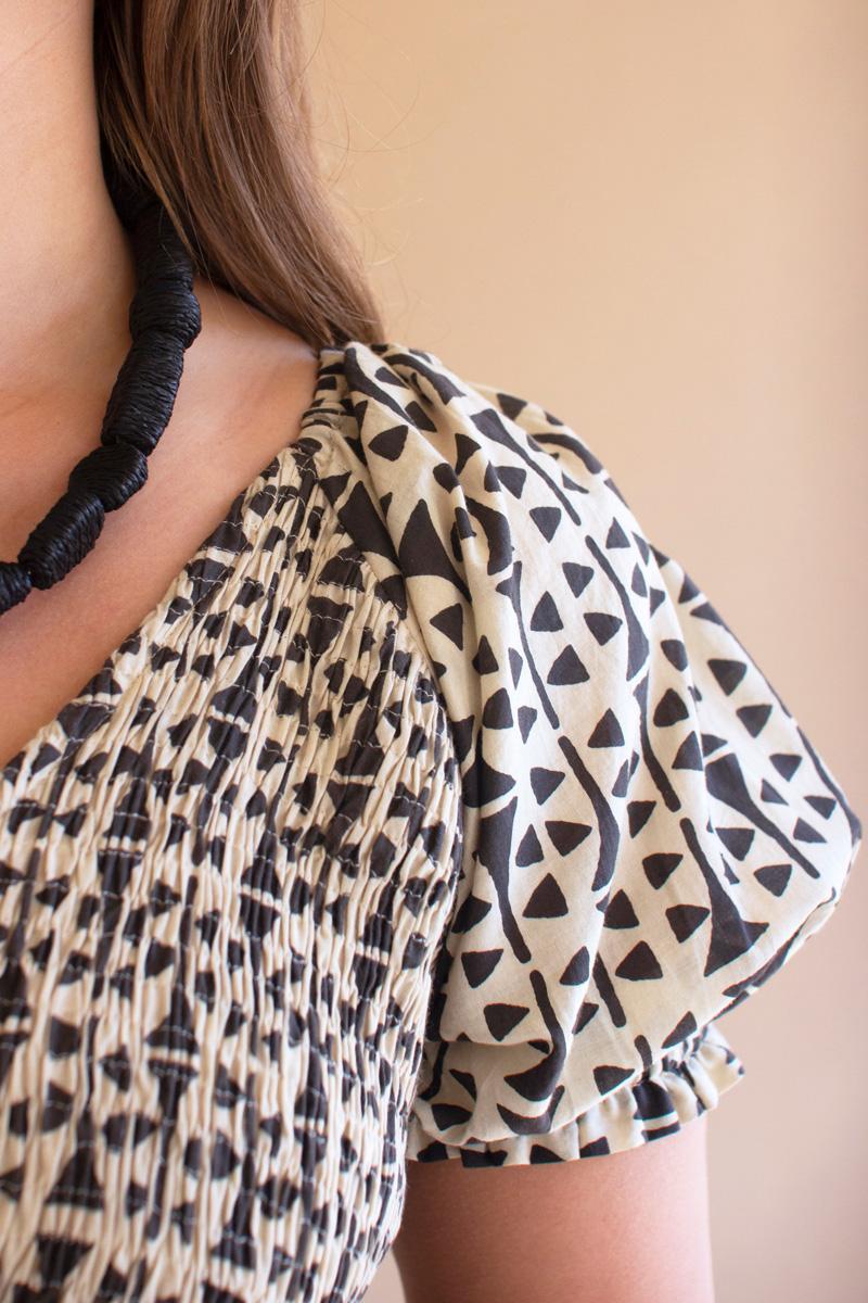 Short Sleeve Printed Dress With Smocked Bodice Osfm (Pack Of 3)