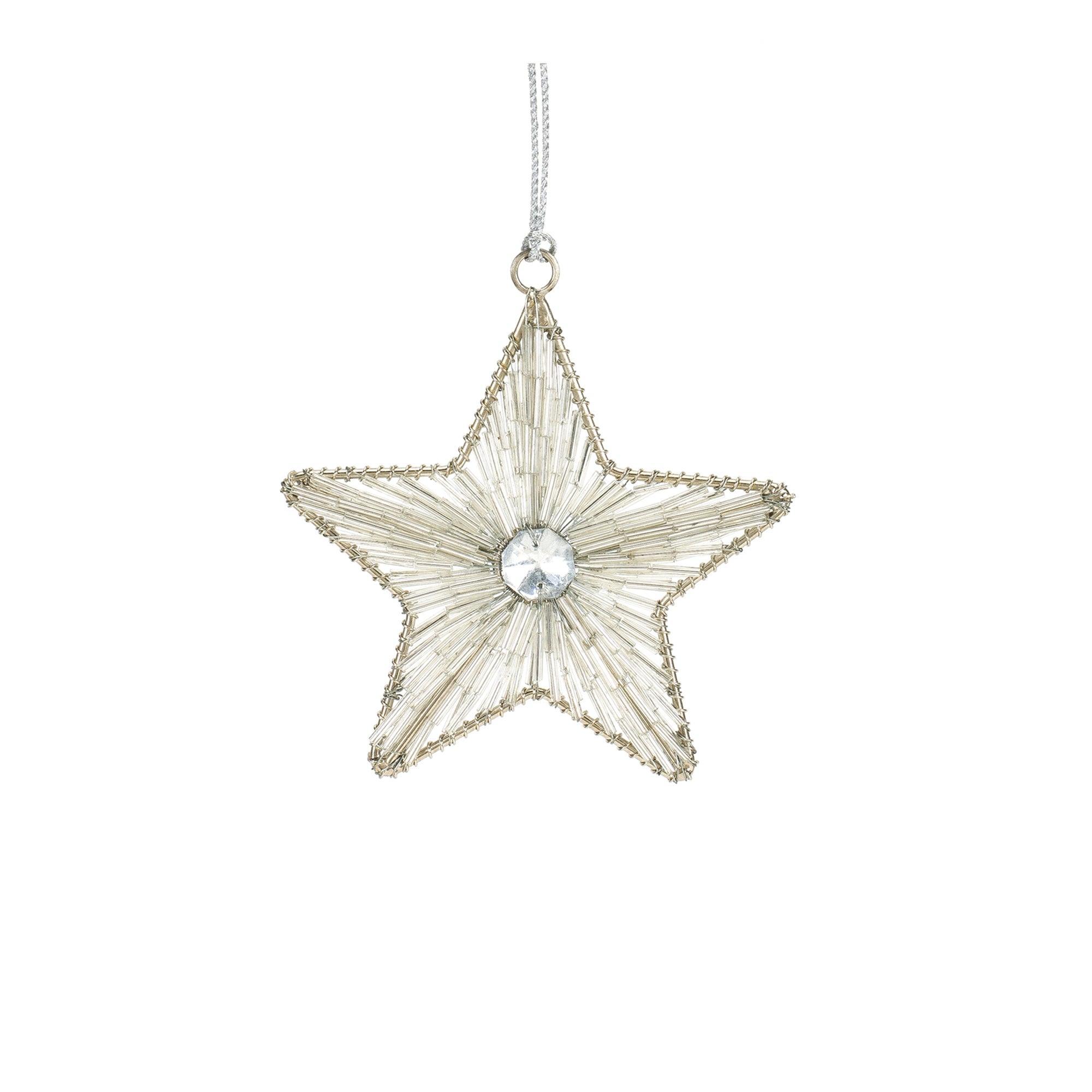 Silver Beaded Metal Star Ornament (Set of 12)