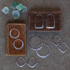 Thin rods of metal are rolled flat to create these orbital forms and geometric shapes. Silver plated. 1.5"x1.75"