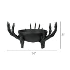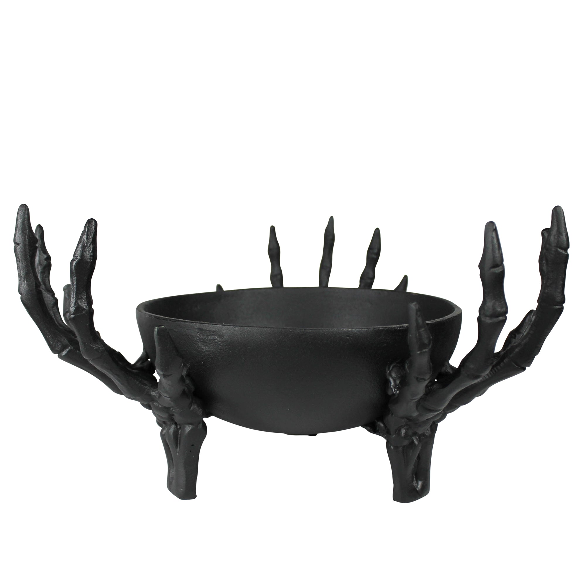 This frightfully fun piece is truly attention grabbing. Crafted of cast aluminum in a dark-as-night finish, three skeletal hands hold a bowl ready to be filled with tricks or treats and keep the mood oh-so spooky.